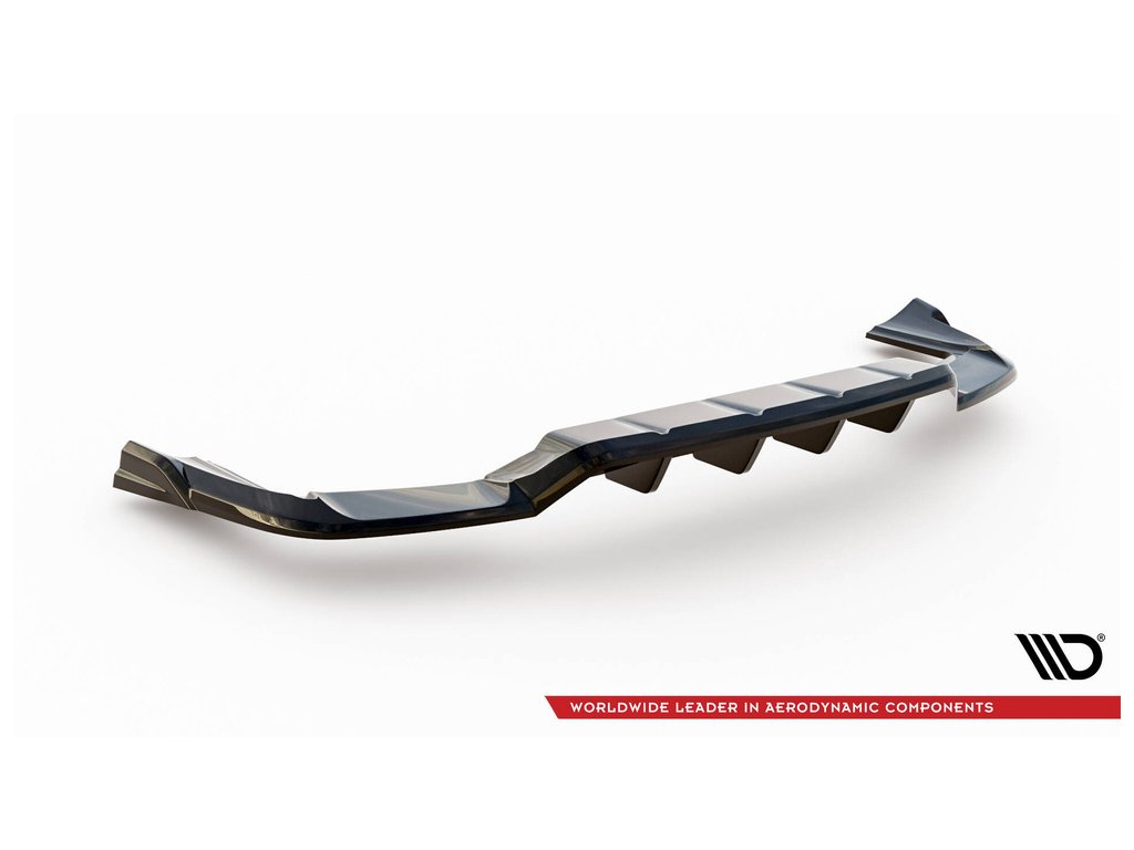 Maxton Design středový spoiler pod zadní nárazník s žebrováním pro vozidlo Porsche Cayenne Mk3 Coupe . Povrchová úprava spoileru černý lesklý plast ABS.