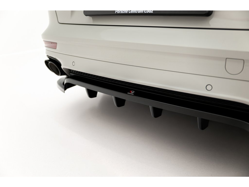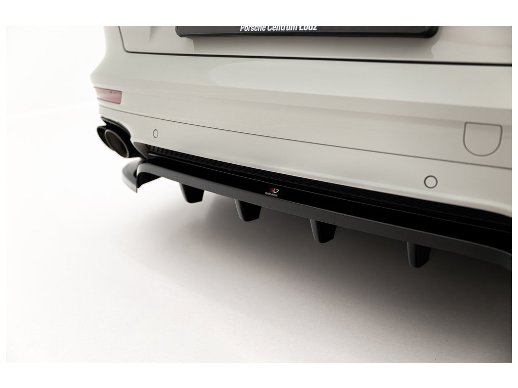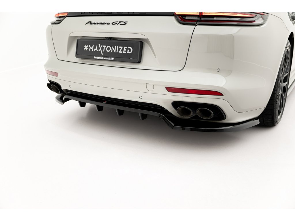 Maxton Design středový spoiler pod zadní nárazník s žebrováním pro vozidlo Porsche Panamera 971 Facelift E-Hybrid . Povrchová úprava spoileru černý lesklý plast ABS.