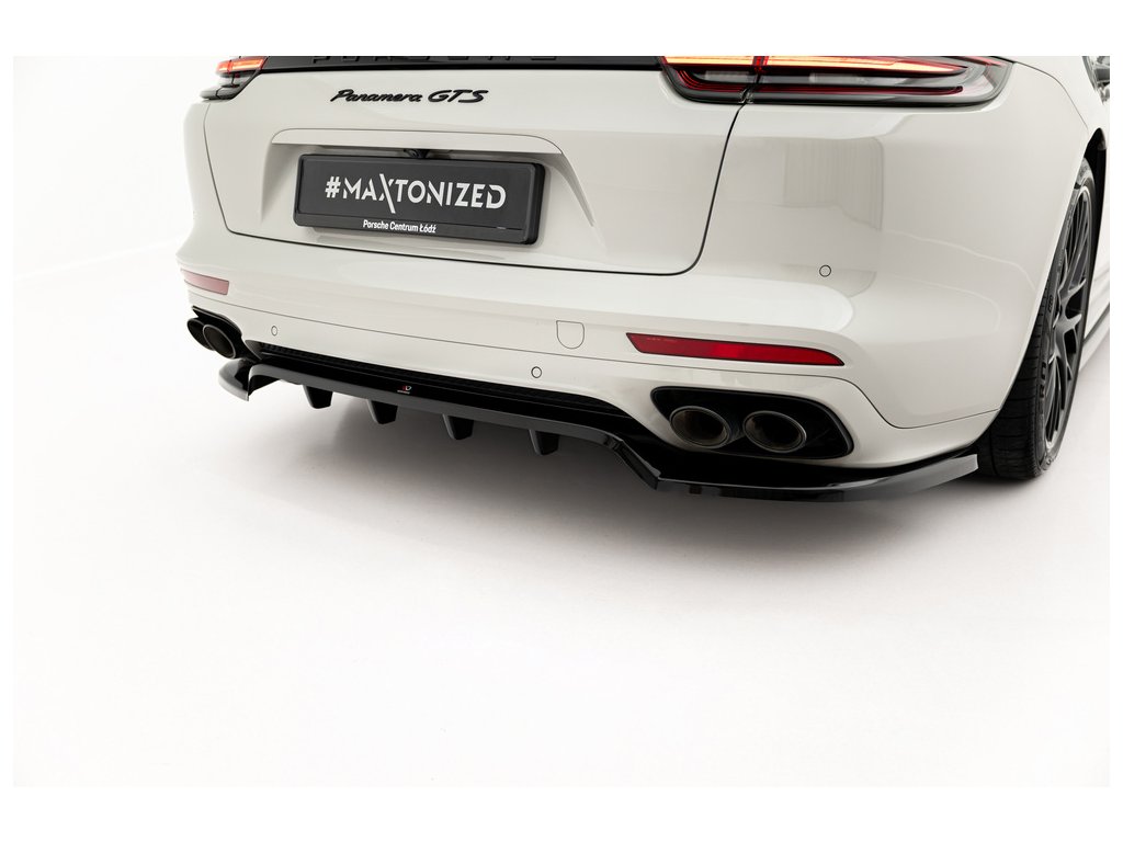 Maxton Design středový spoiler pod zadní nárazník s žebrováním pro Porsche Panamera 971 Facelift E-Hybrid, černý lesklý plast ABS
