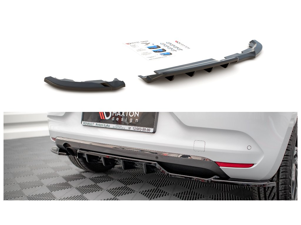 Maxton Design středový spoiler pod zadní nárazník s žebrováním pro vozidlo Renault Clio Mk5 . Povrchová úprava spoileru carbon-Look.