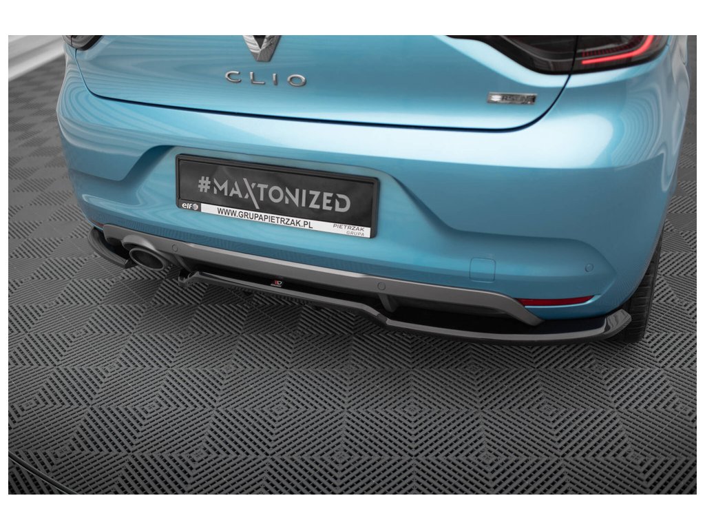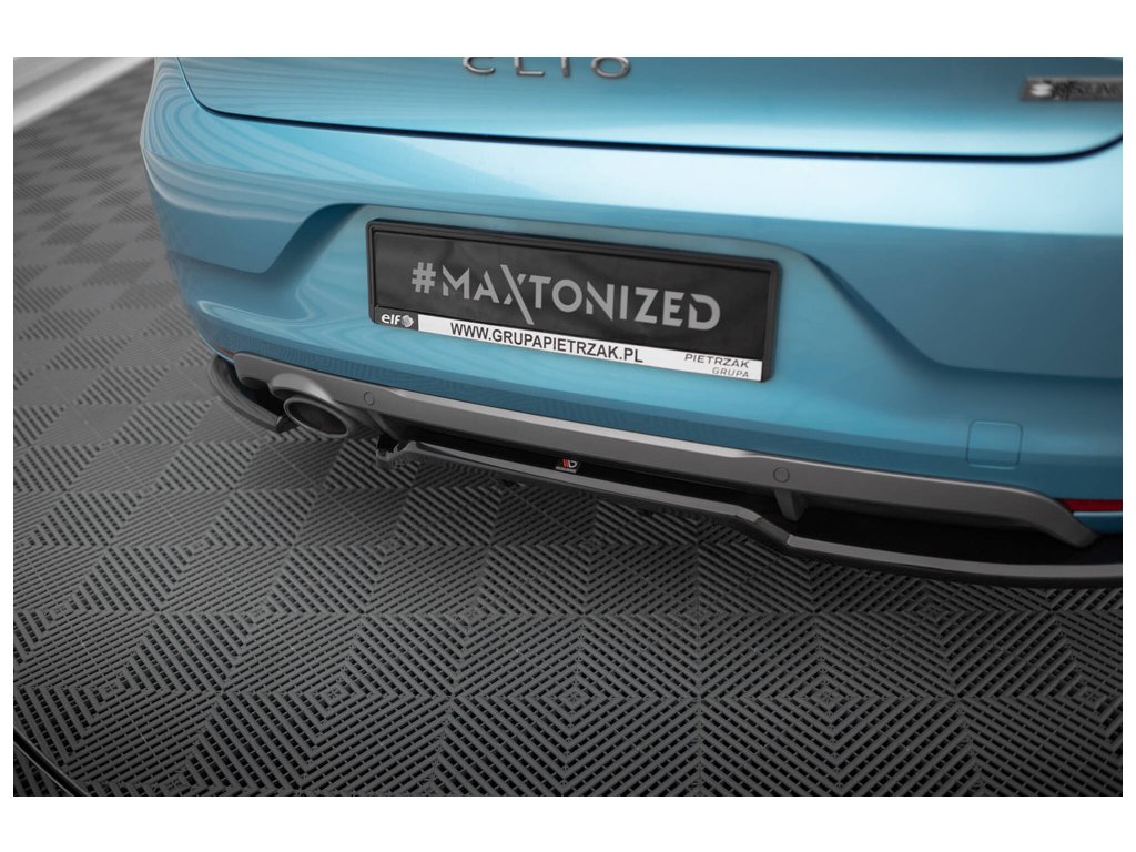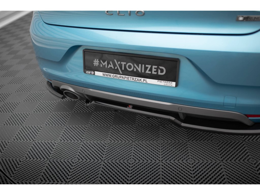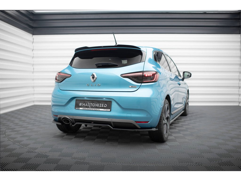 Maxton Design středový spoiler pod zadní nárazník s žebrováním pro vozidlo Renault Clio Mk5 R.S. Line . Povrchová úprava spoileru černý lesklý plast ABS.