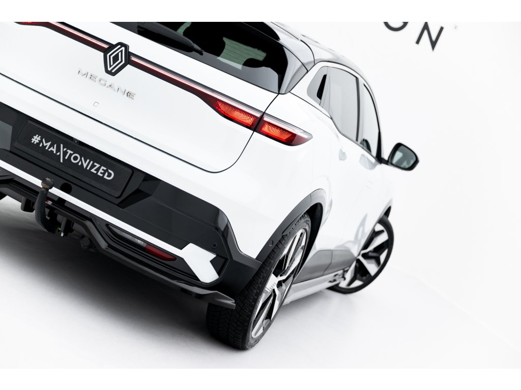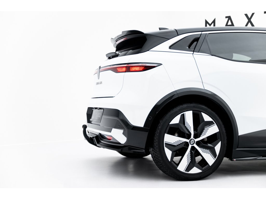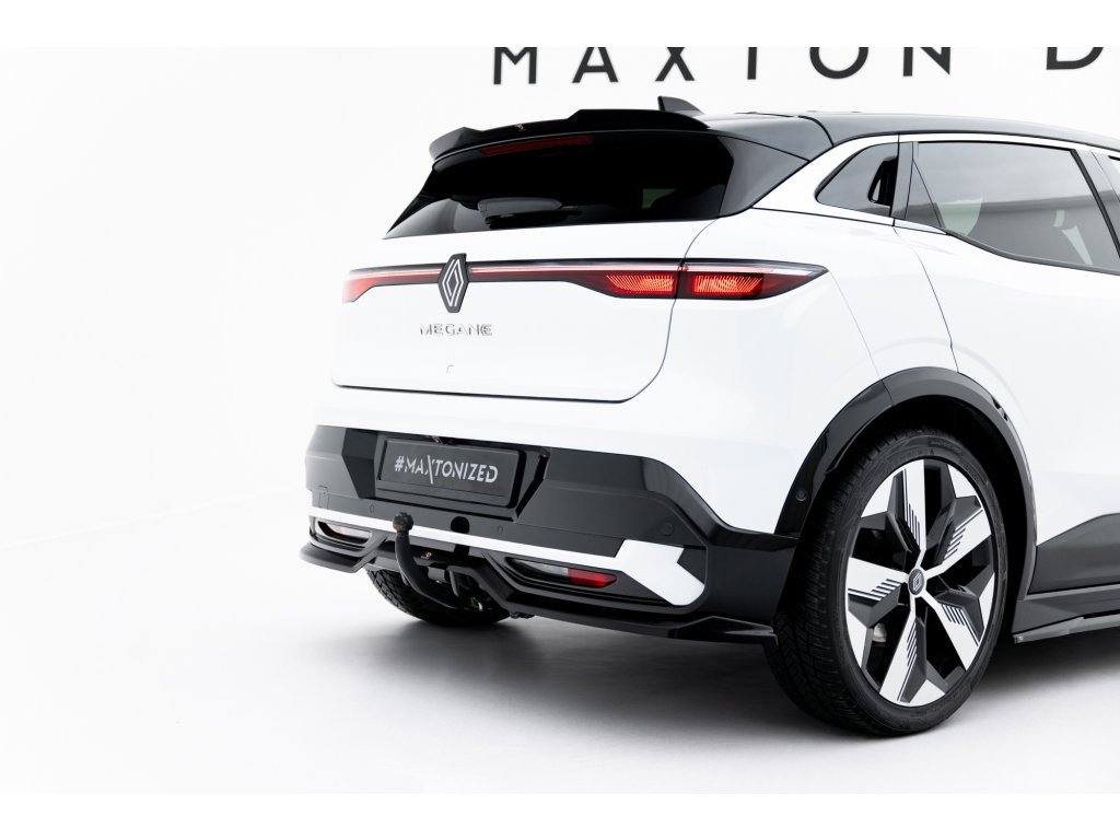 Maxton Design středový spoiler pod zadní nárazník s žebrováním pro vozidlo Renault Megane E-Tech Electric Mk1 . Povrchová úprava spoileru černý lesklý plast ABS.