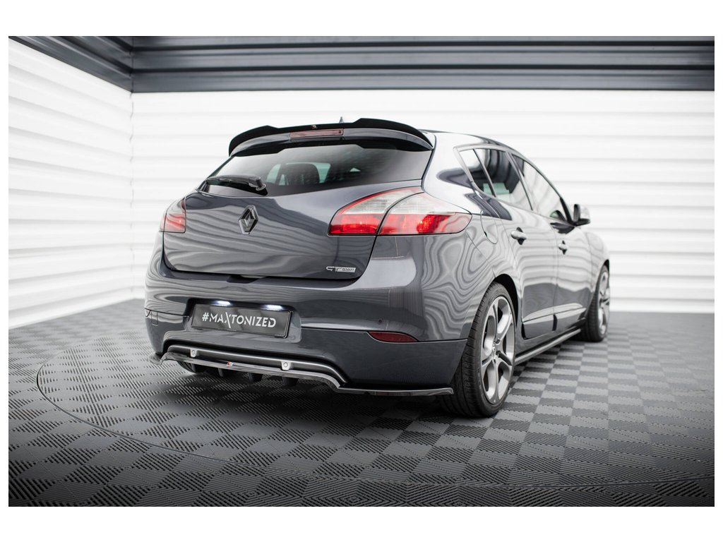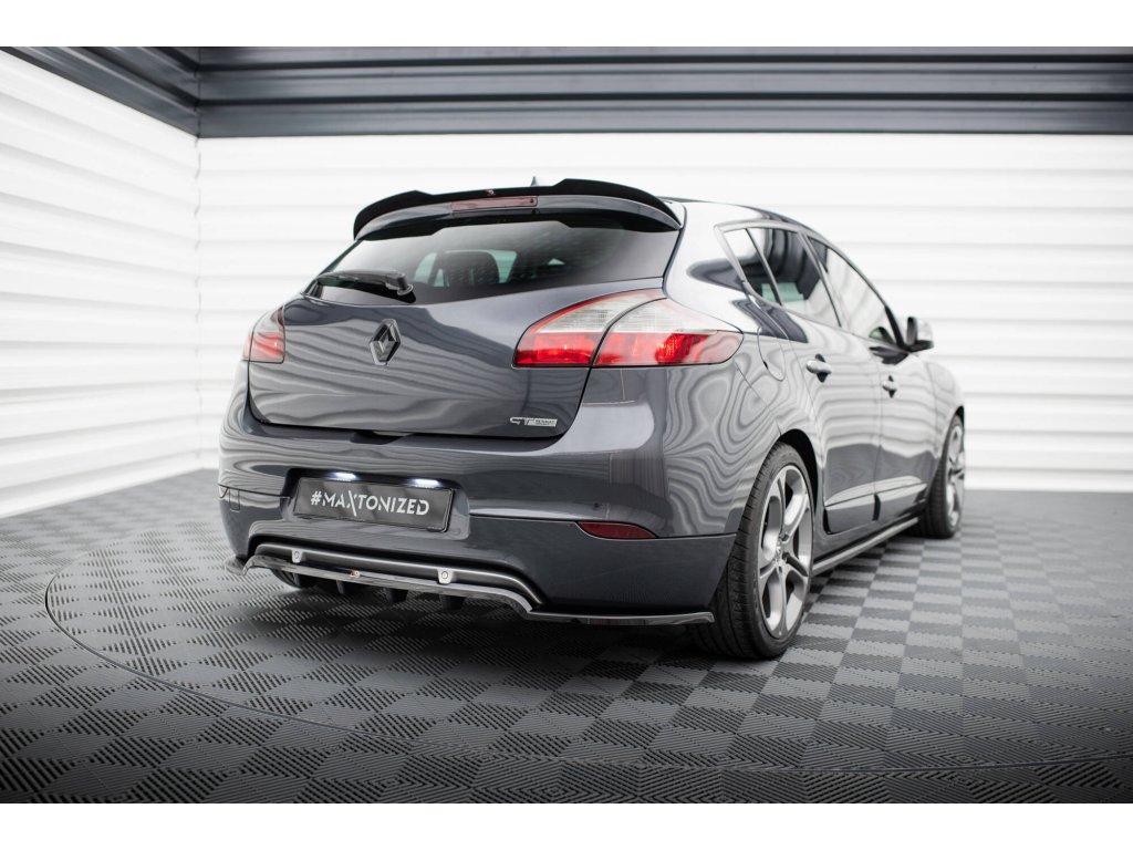 Maxton Design středový spoiler pod zadní nárazník s žebrováním pro vozidlo Renault Megane GT Mk3 Facelift . Povrchová úprava spoileru černý lesklý plast ABS.