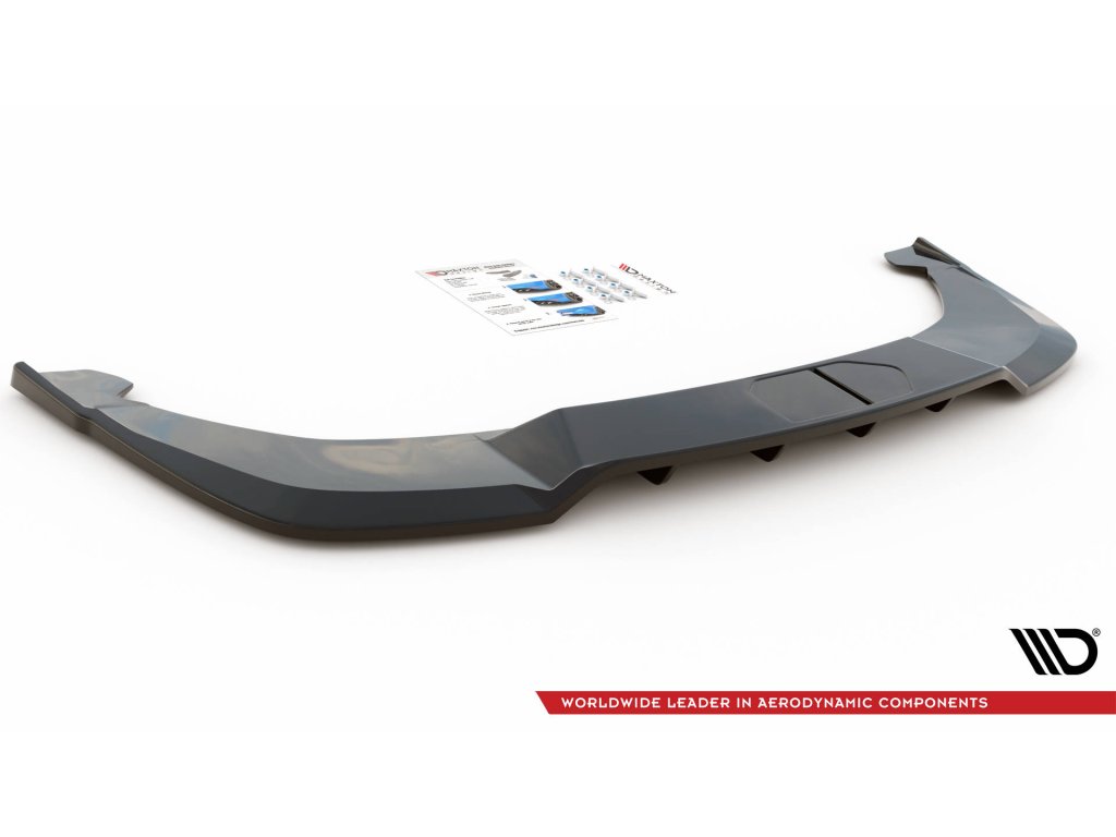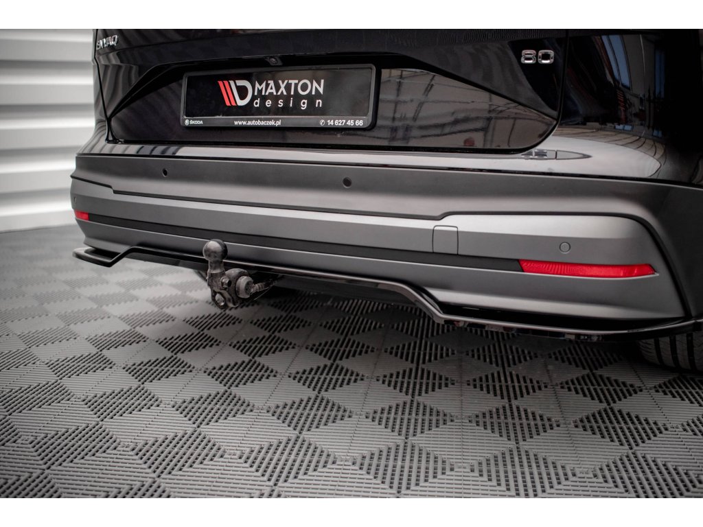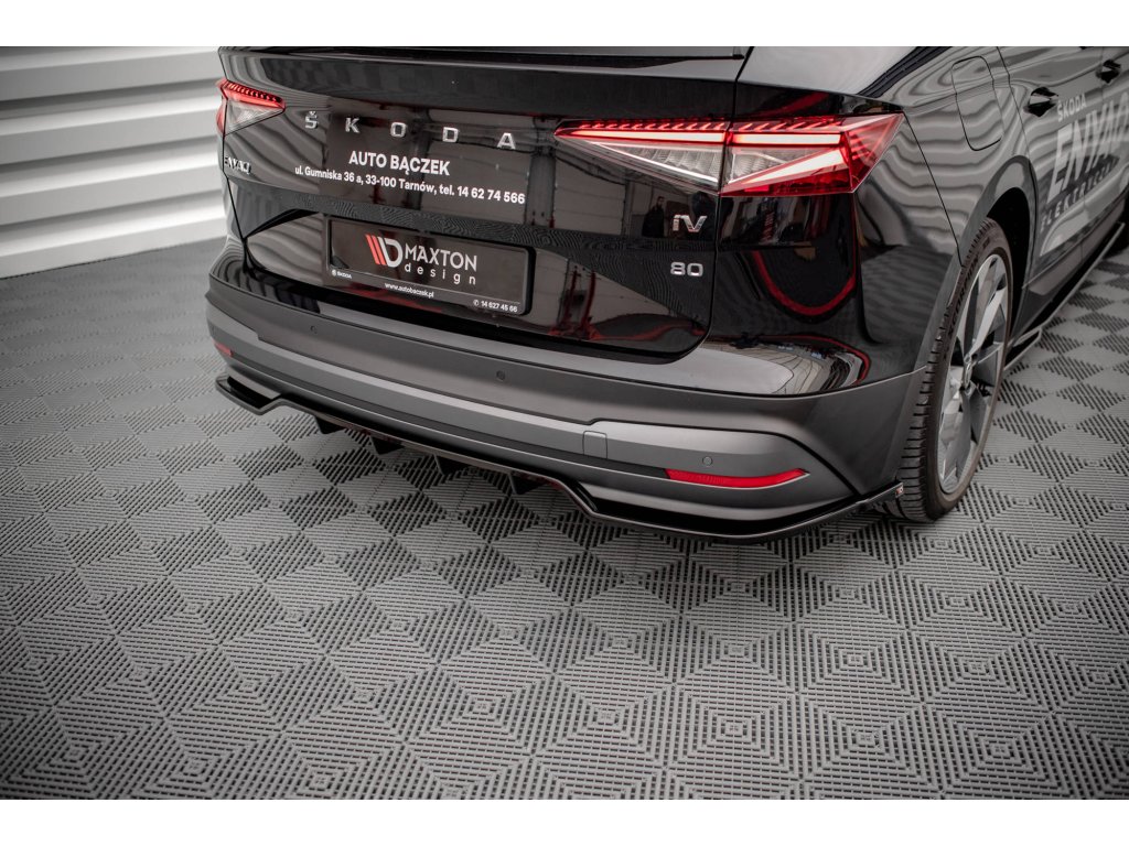 Maxton Design středový spoiler pod zadní nárazník s žebrováním pro vozidlo Škoda Enyaq iV Mk1 . Povrchová úprava spoileru carbon-Look.