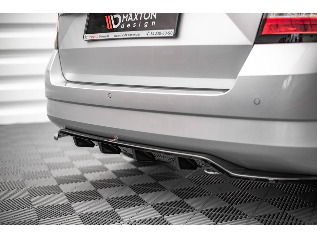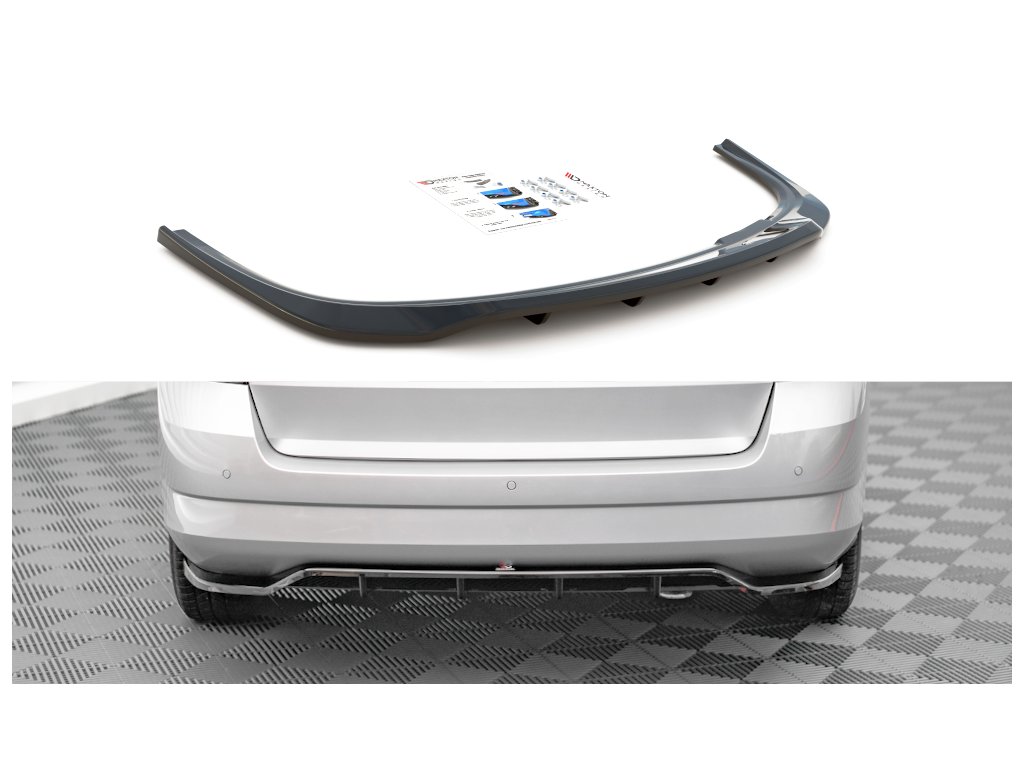 Maxton Design středový spoiler pod zadní nárazník s žebrováním pro vozidlo Škoda Fabia Mk3 . Povrchová úprava spoileru carbon-Look.
