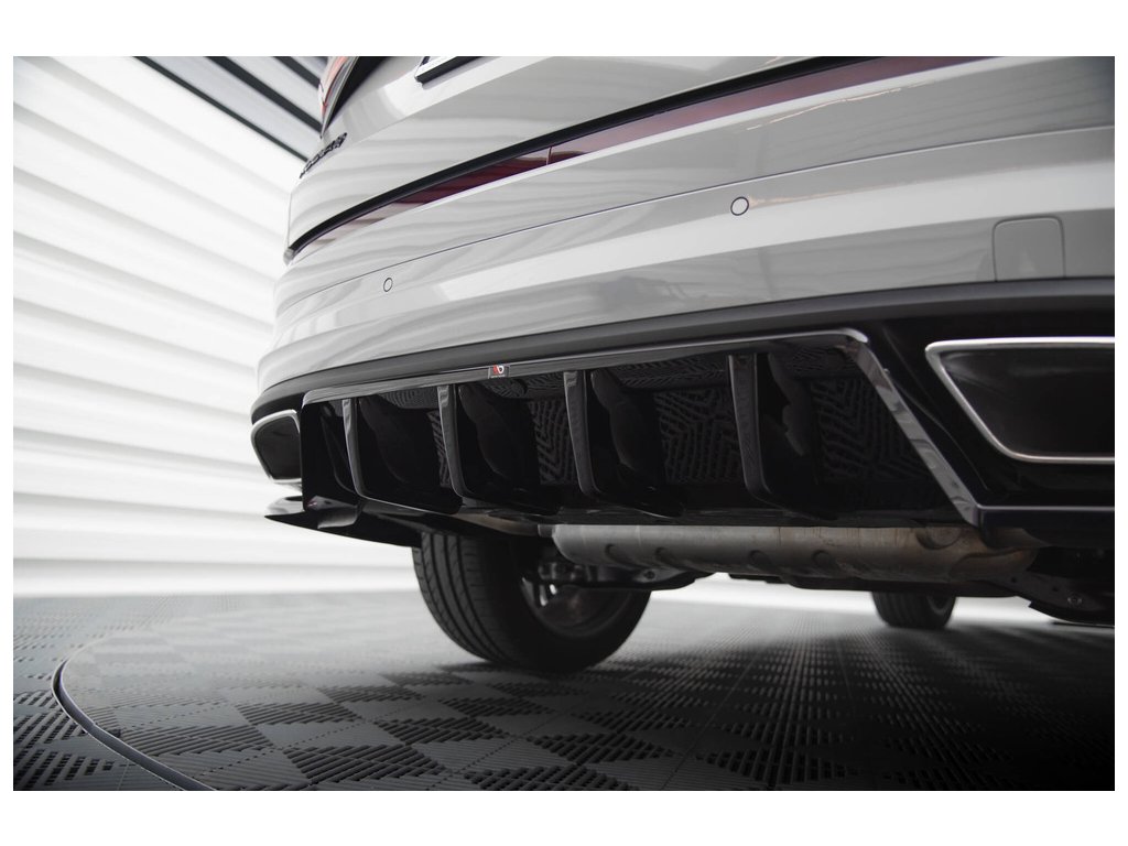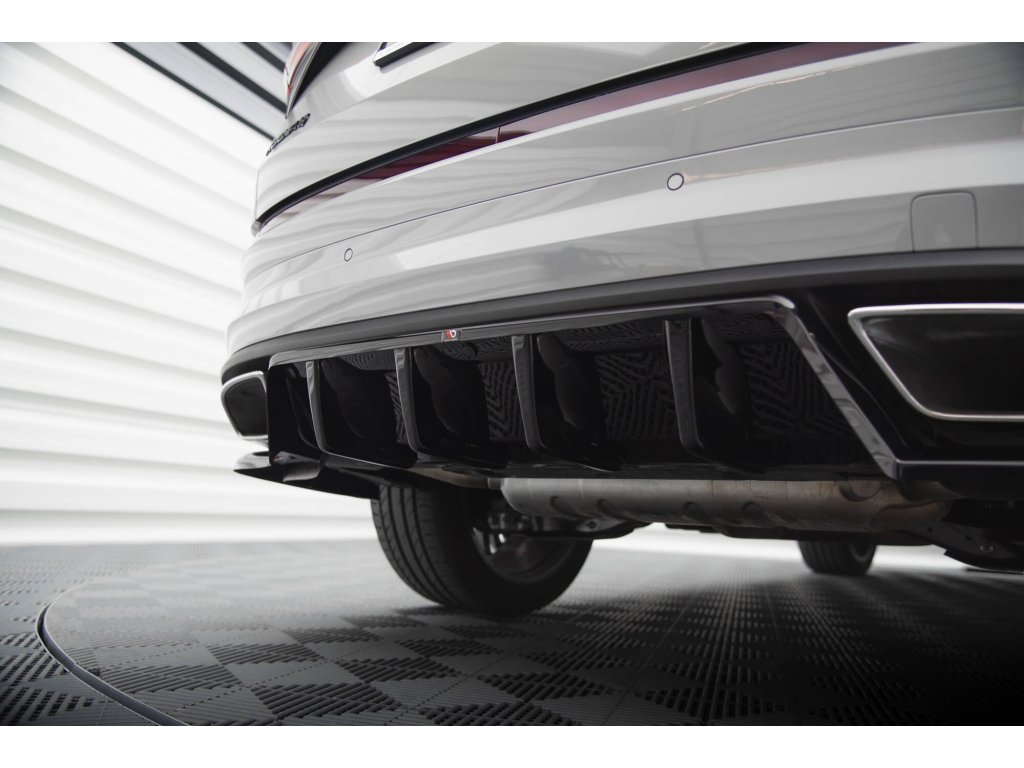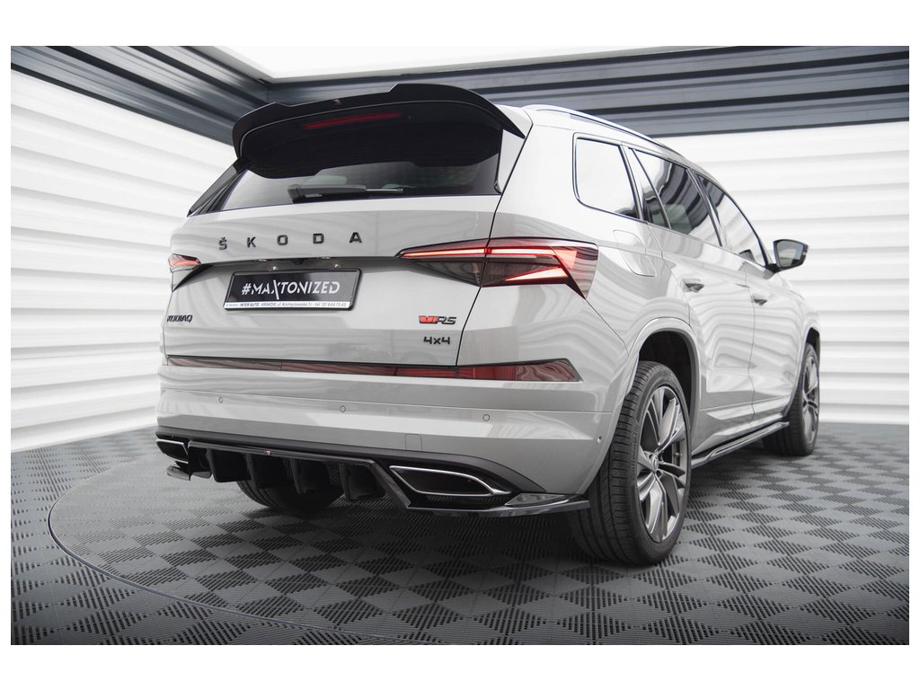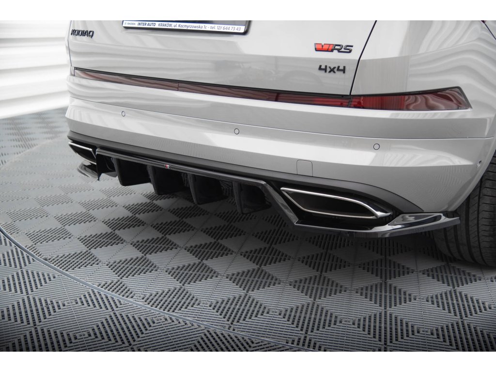 Maxton Design středový spoiler pod zadní nárazník s žebrováním pro Škoda Kodiaq RS Facelift, černý lesklý plast ABS