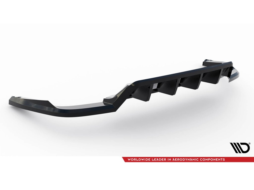 Maxton Design středový spoiler pod zadní nárazník s žebrováním pro vozidlo Škoda Kodiaq RS Facelift . Povrchová úprava spoileru černý lesklý plast ABS.