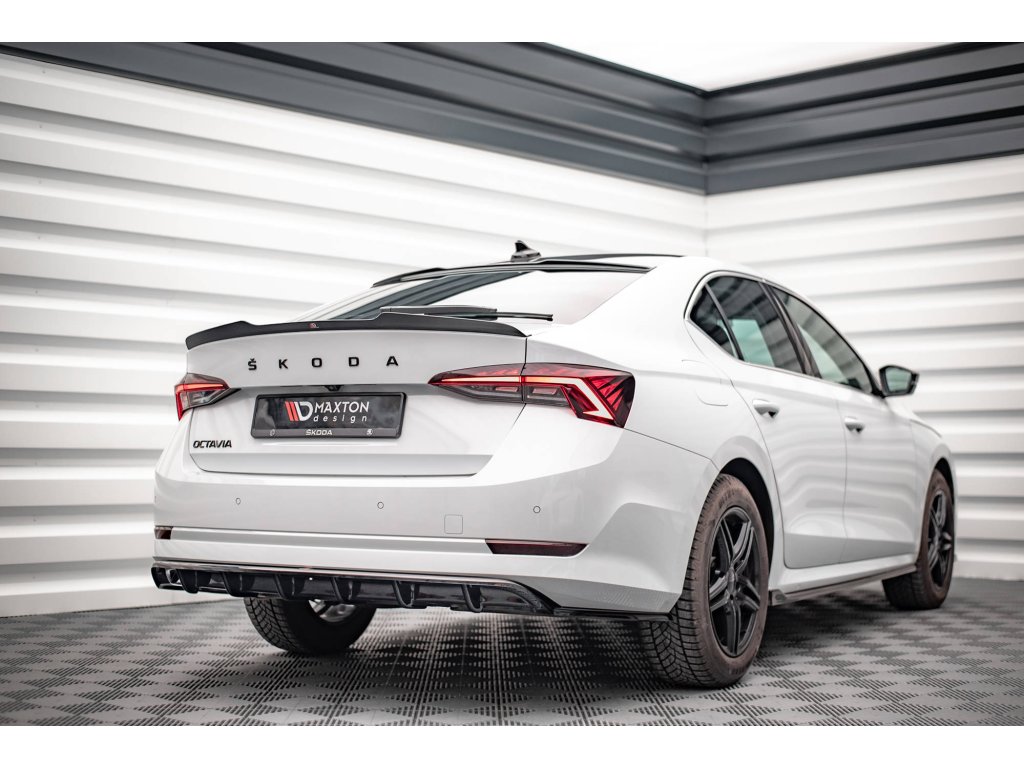 Maxton Design středový spoiler pod zadní nárazník s žebrováním pro vozidlo Škoda Octavia Mk4 . Povrchová úprava spoileru carbon-Look.