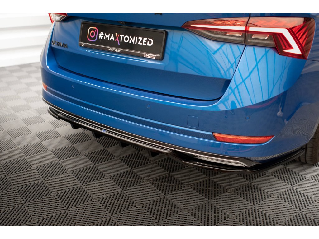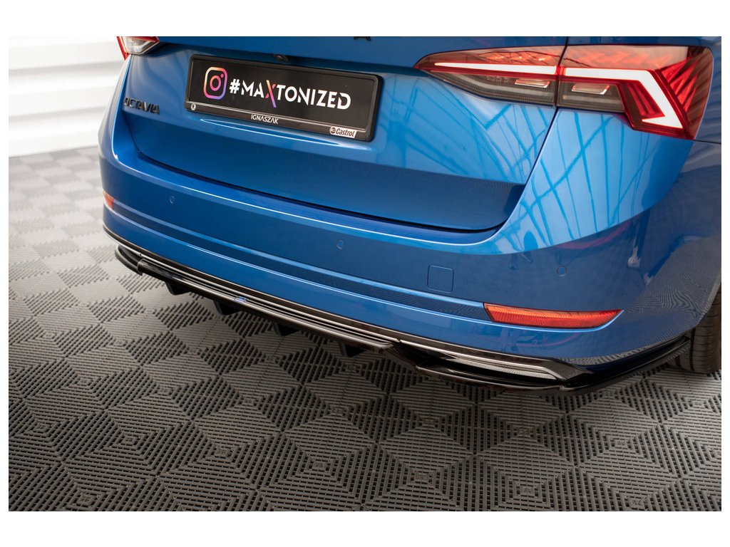 Maxton Design středový spoiler pod zadní nárazník s žebrováním pro Škoda Octavia Mk4, černý lesklý plast ABS, Sportline