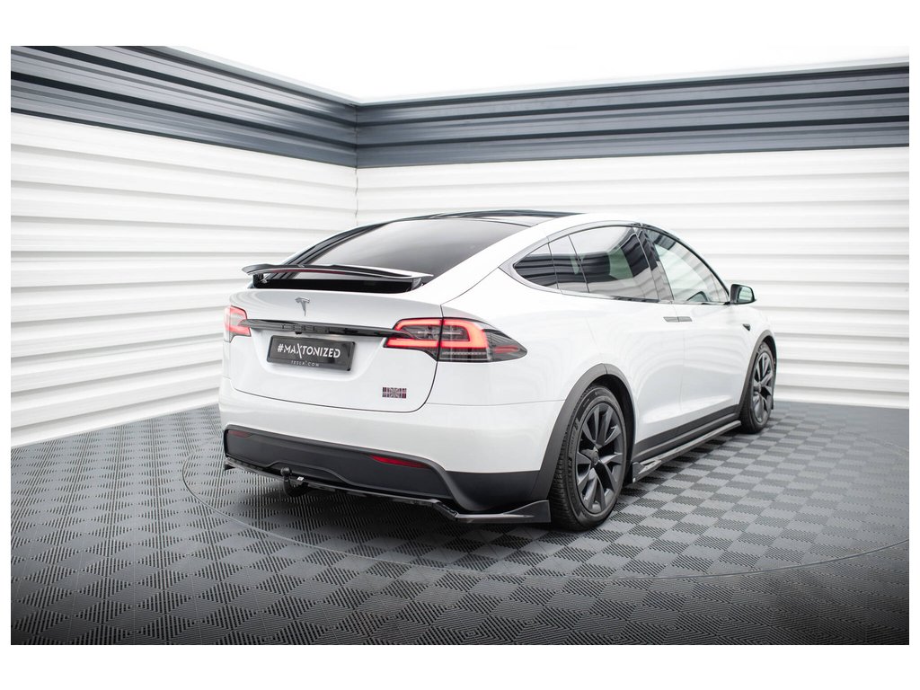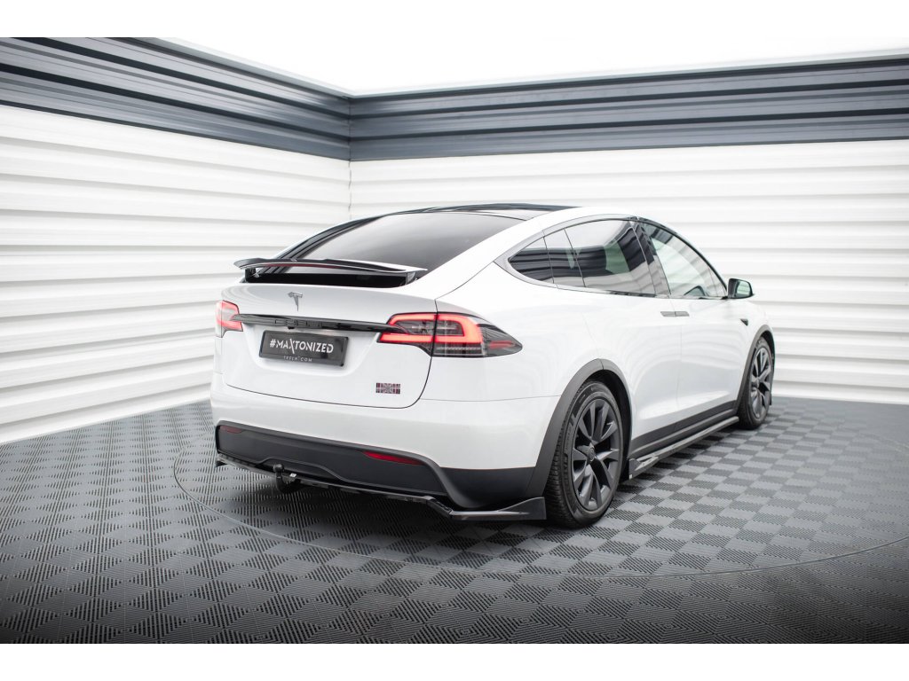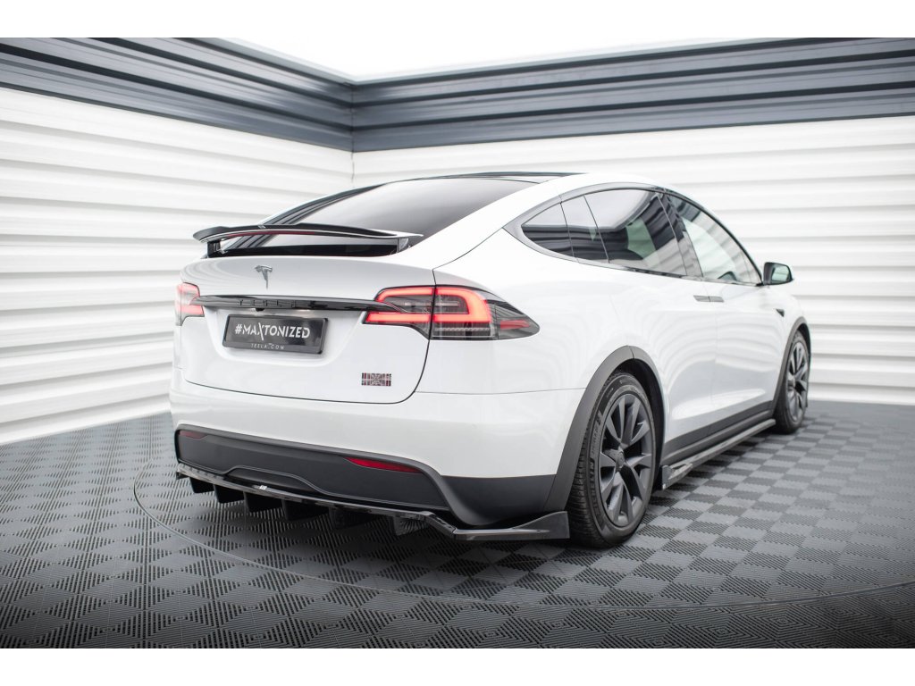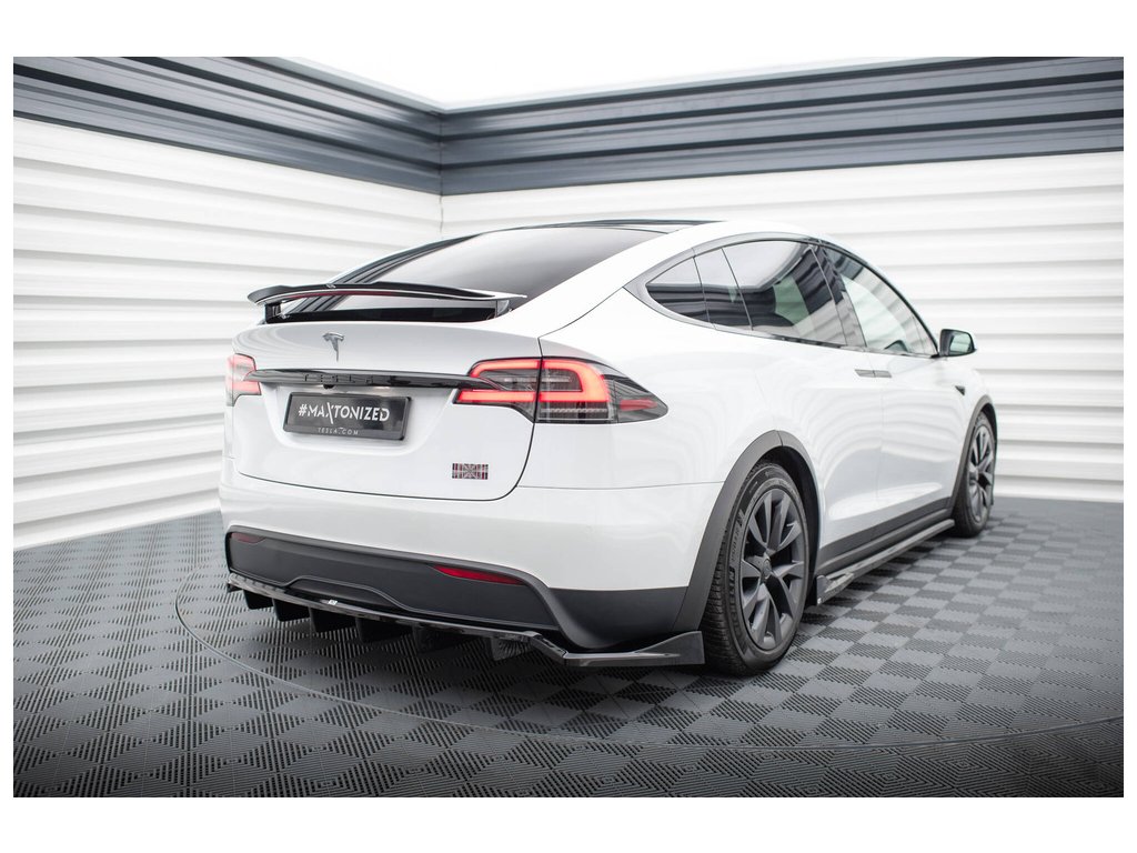 Maxton Design středový spoiler pod zadní nárazník s žebrováním pro vozidlo Tesla Model X Mk1 Facelift . Povrchová úprava spoileru černý lesklý plast ABS.