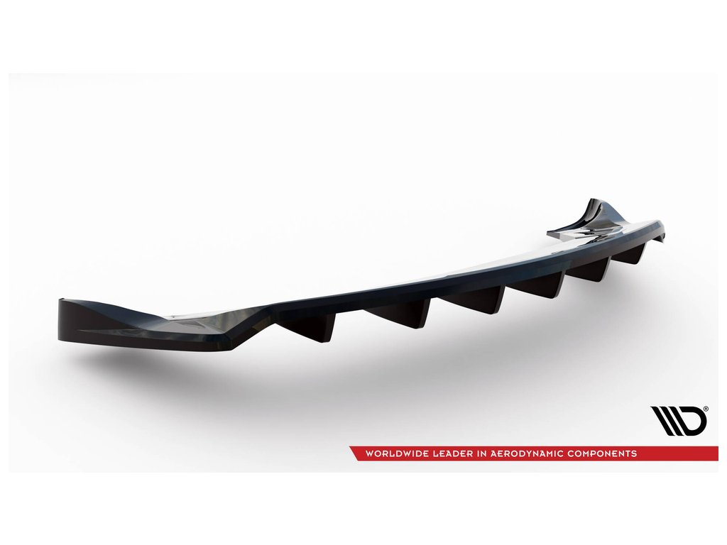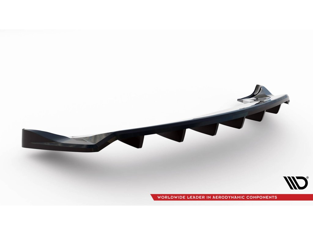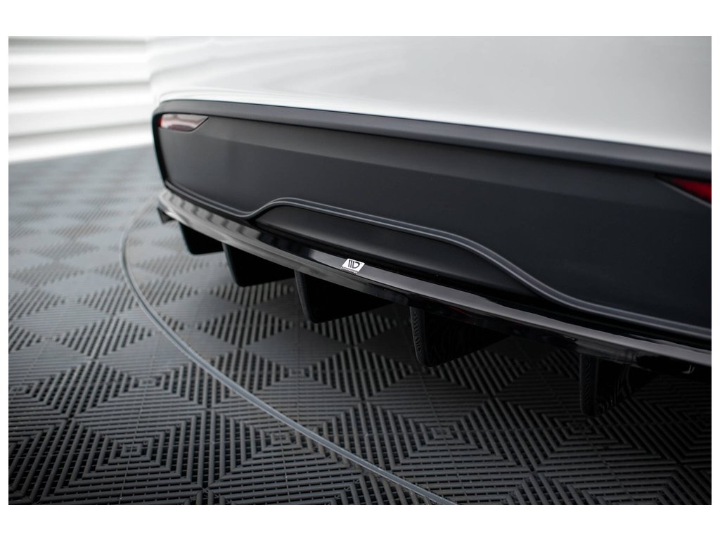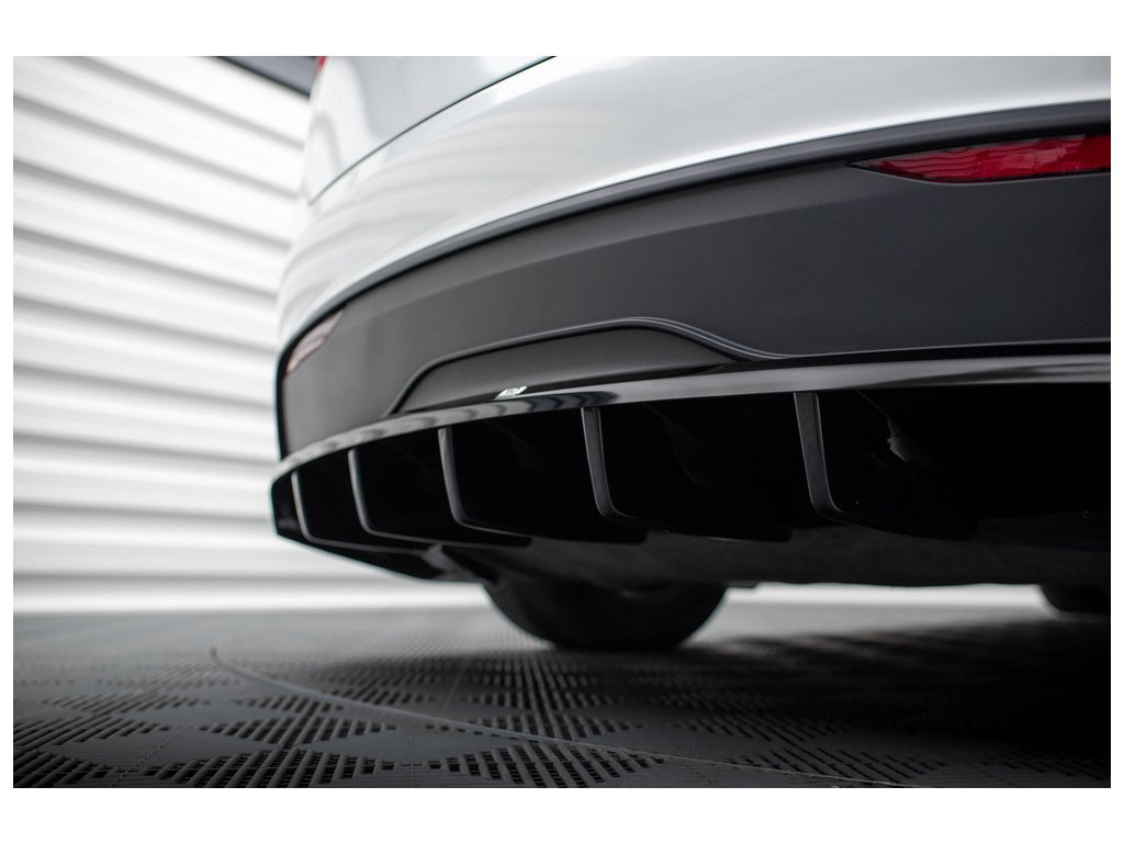 Maxton Design středový spoiler pod zadní nárazník s žebrováním pro vozidlo Tesla Model X Mk1 Facelift . Povrchová úprava spoileru černý lesklý plast ABS.