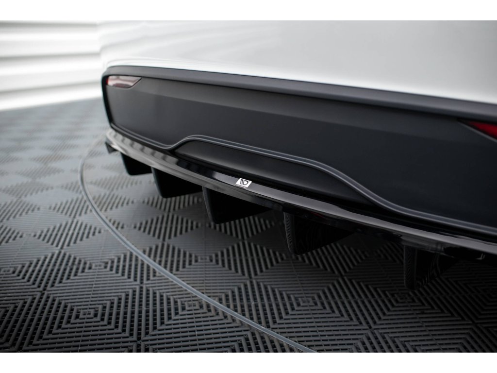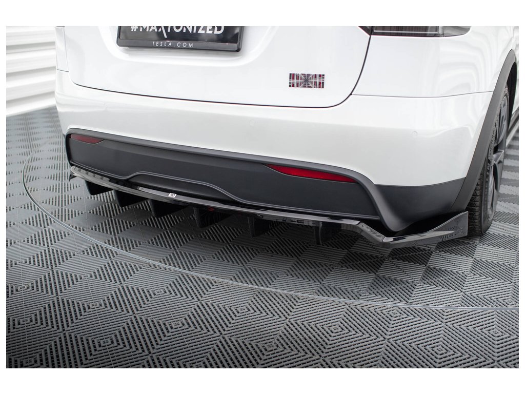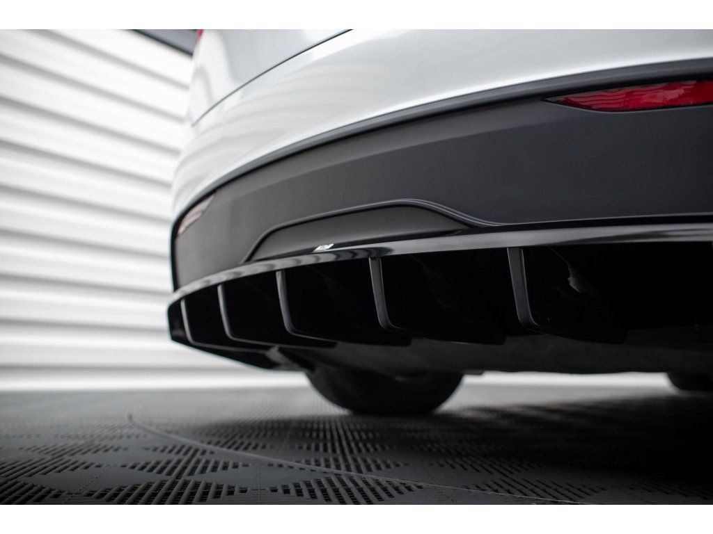 Maxton Design středový spoiler pod zadní nárazník s žebrováním pro Tesla Model X Mk1 Facelift, černý lesklý plast ABS