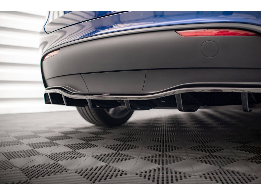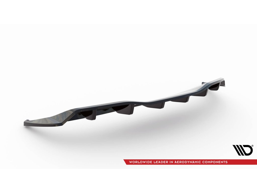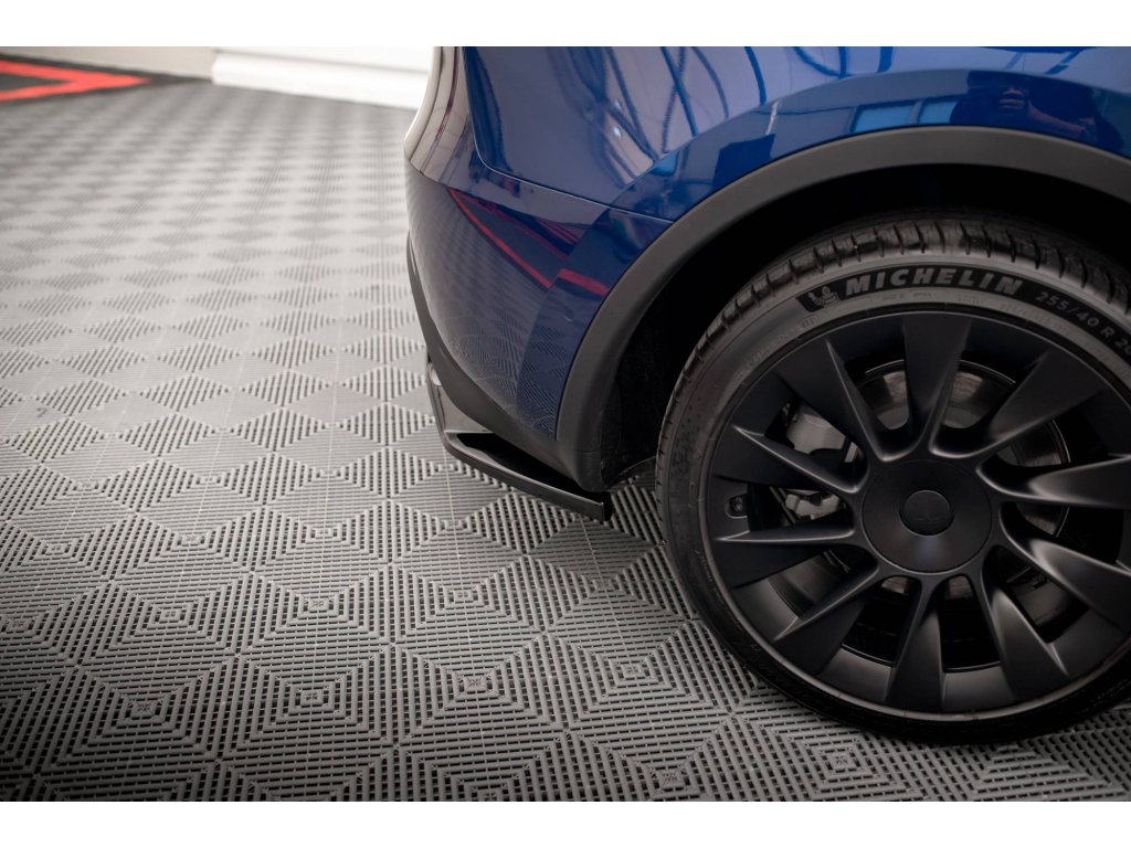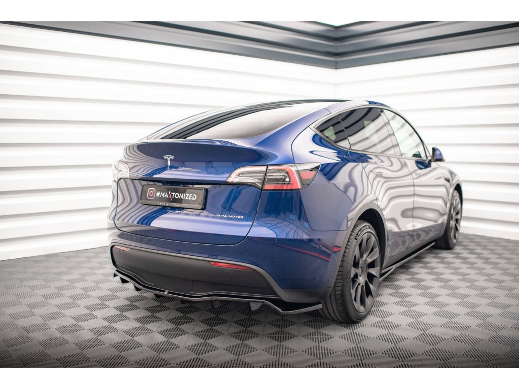 Maxton Design středový spoiler pod zadní nárazník s žebrováním pro vozidlo Tesla Model Y . Povrchová úprava spoileru carbon-Look.