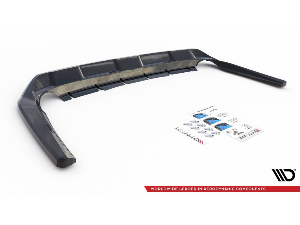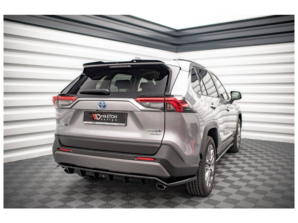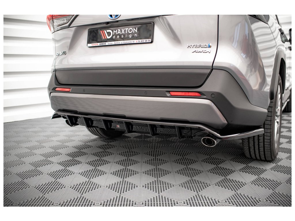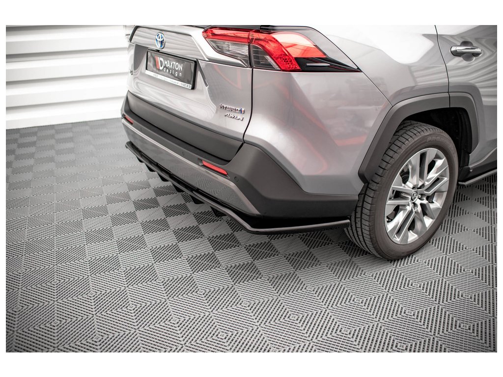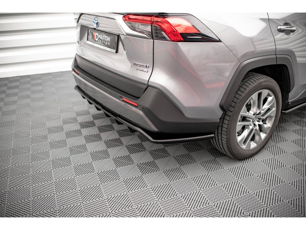 Maxton Design středový spoiler pod zadní nárazník s žebrováním pro vozidlo Toyota RAV4 Mk5 . Povrchová úprava spoileru černý lesklý plast ABS.
