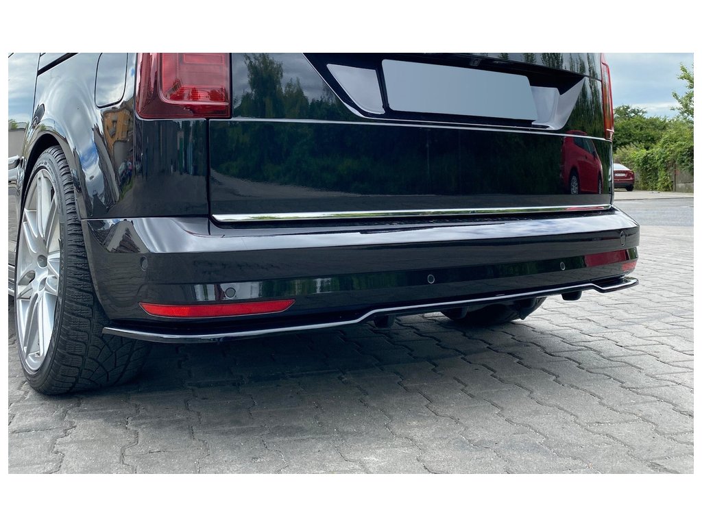 Maxton Design středový spoiler pod zadní nárazník s žebrováním pro vozidlo Volkswagen Caddy Mk 4 . Povrchová úprava spoileru černý lesklý plast ABS.