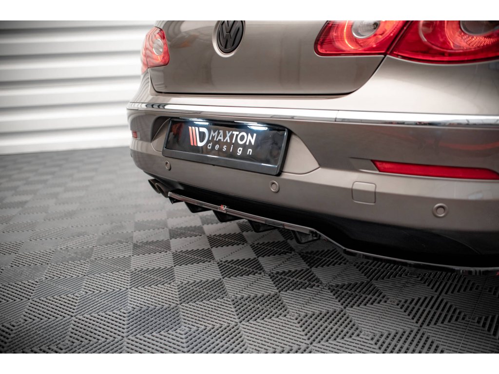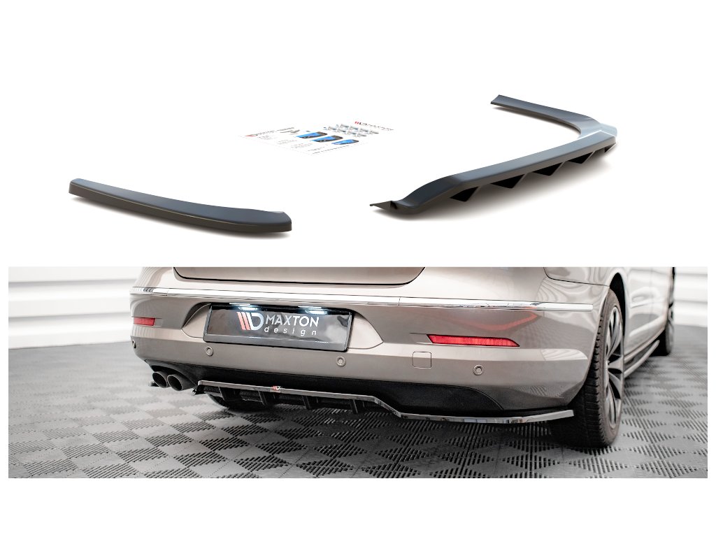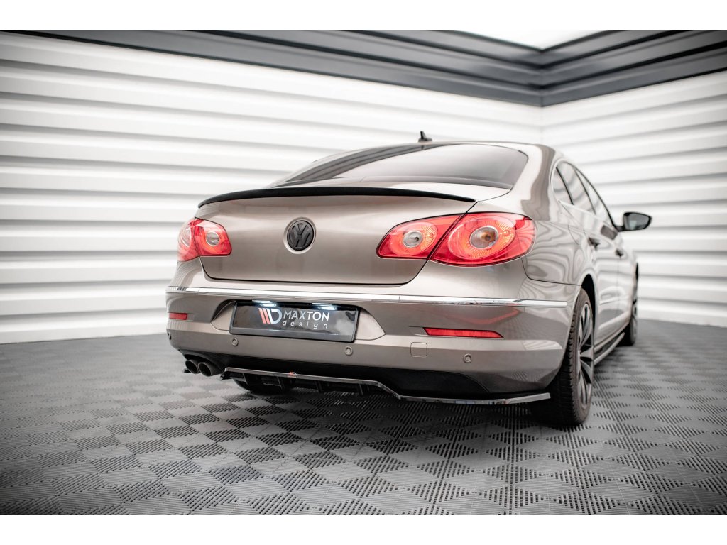 Maxton Design středový spoiler pod zadní nárazník s žebrováním pro vozidlo Volkswagen CC . Povrchová úprava spoileru carbon-Look.