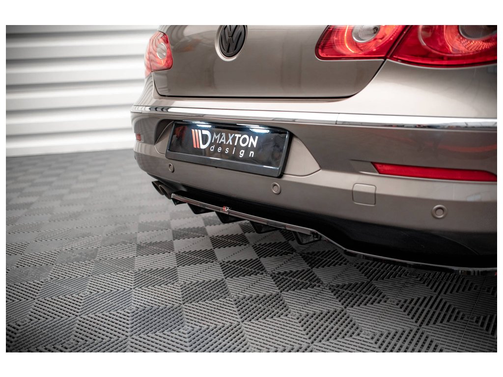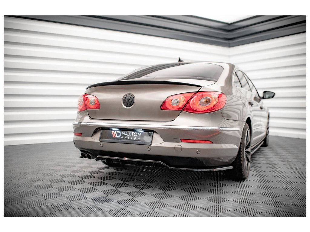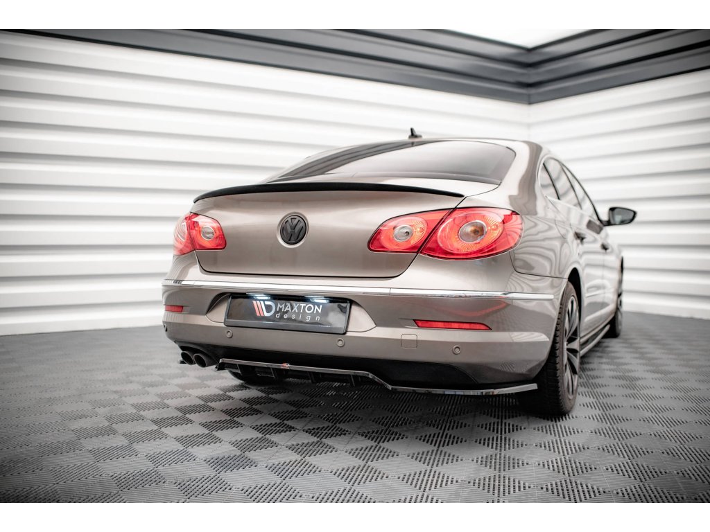 Maxton Design středový spoiler pod zadní nárazník s žebrováním pro vozidlo Volkswagen CC . Povrchová úprava spoileru černý lesklý plast ABS.