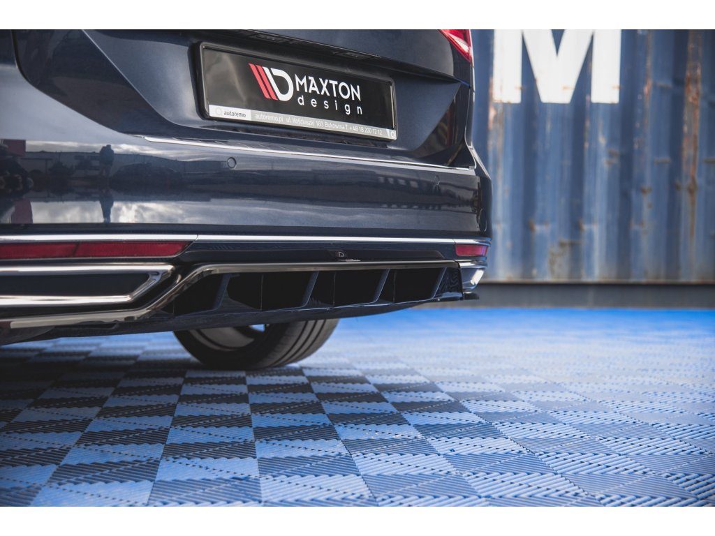 Maxton Design středový spoiler pod zadní nárazník s žebrováním pro vozidlo Volkswagen Passat Mk8 (B8) . Povrchová úprava spoileru černý lesklý plast ABS.