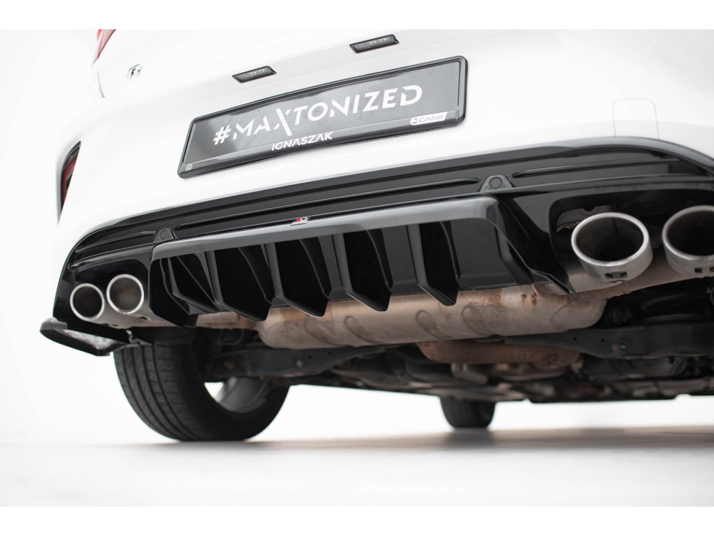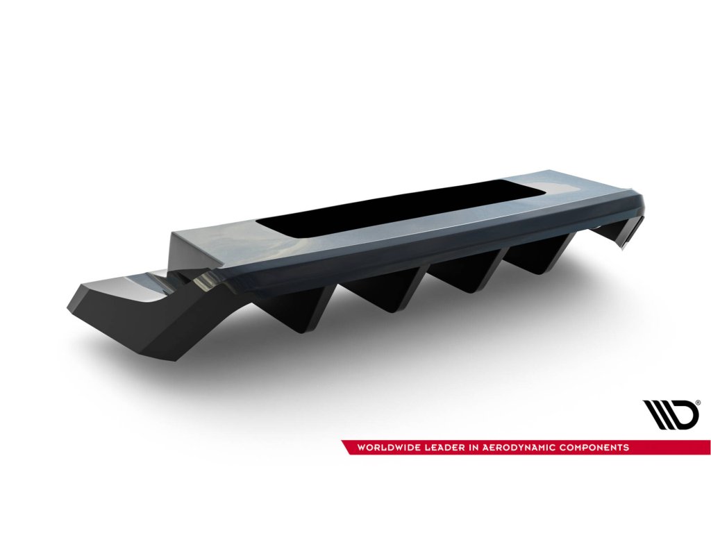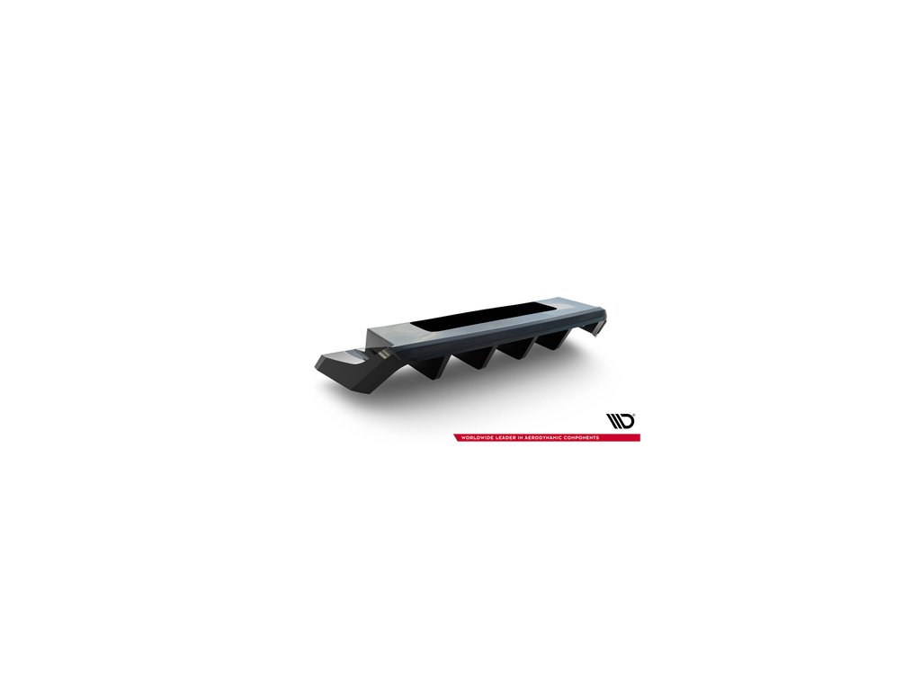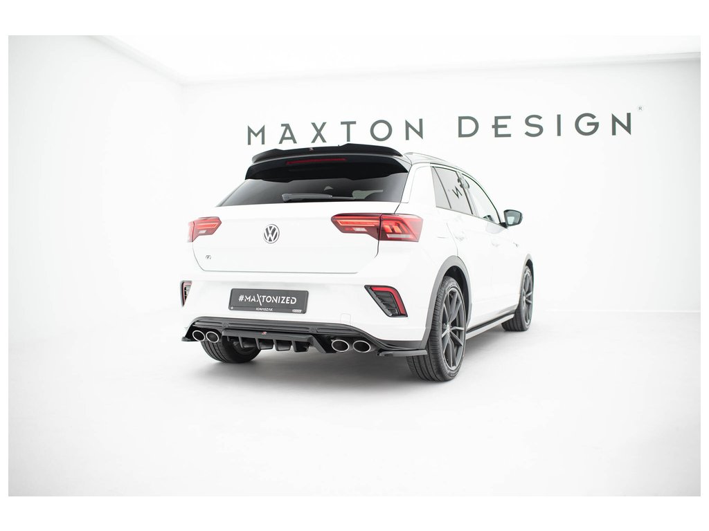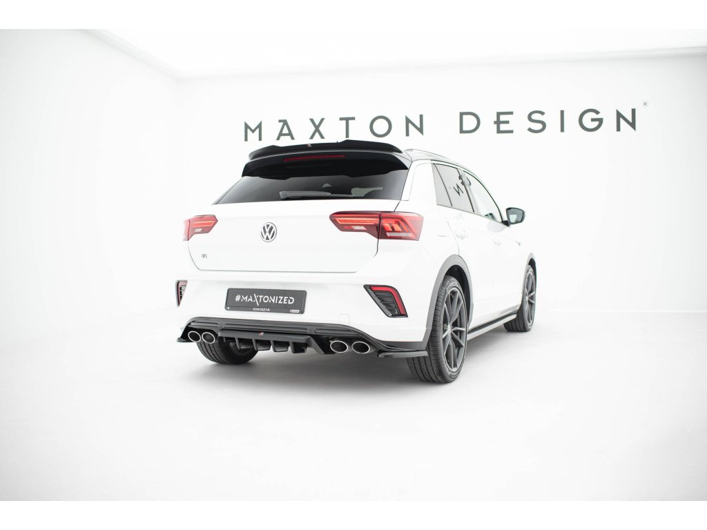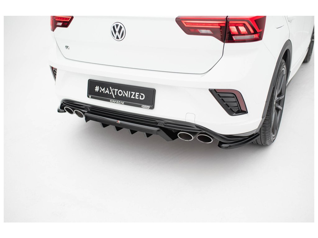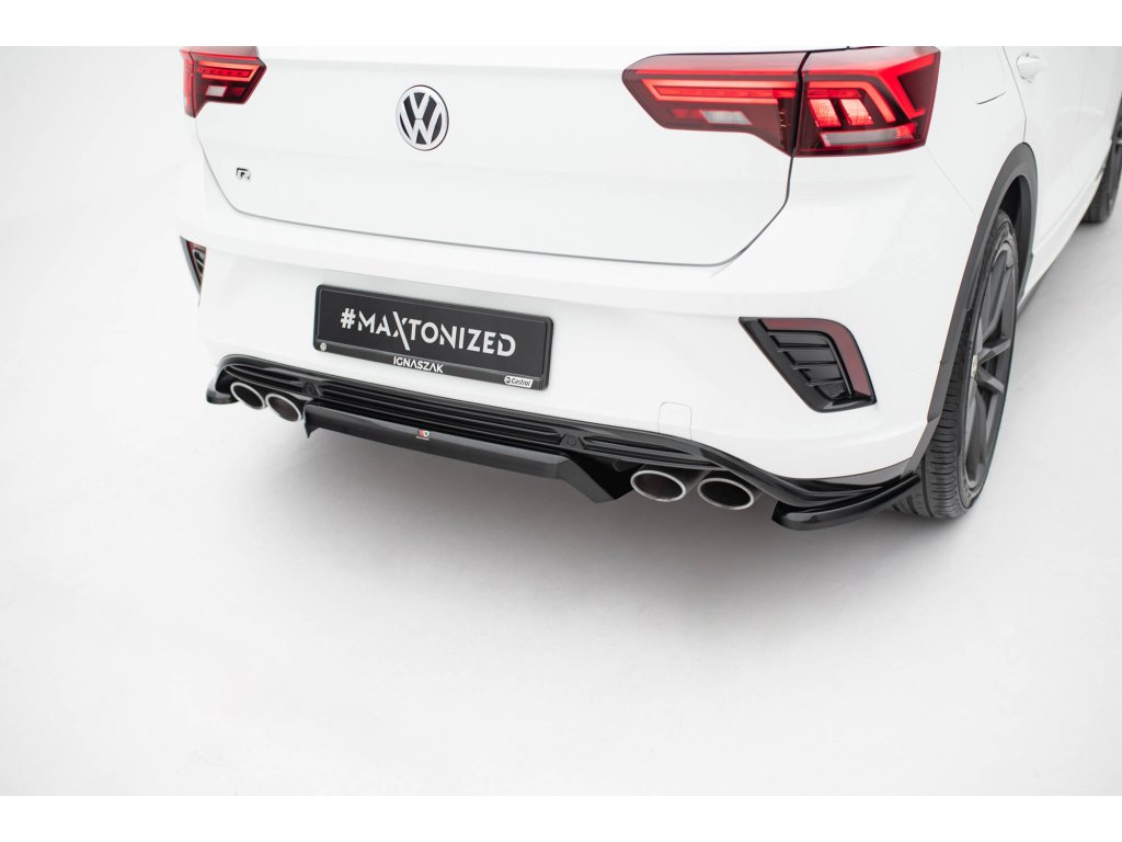 Maxton Design středový spoiler pod zadní nárazník s žebrováním pro vozidlo Volkswagen T-roc R Mk1 . Povrchová úprava spoileru černý lesklý plast ABS.