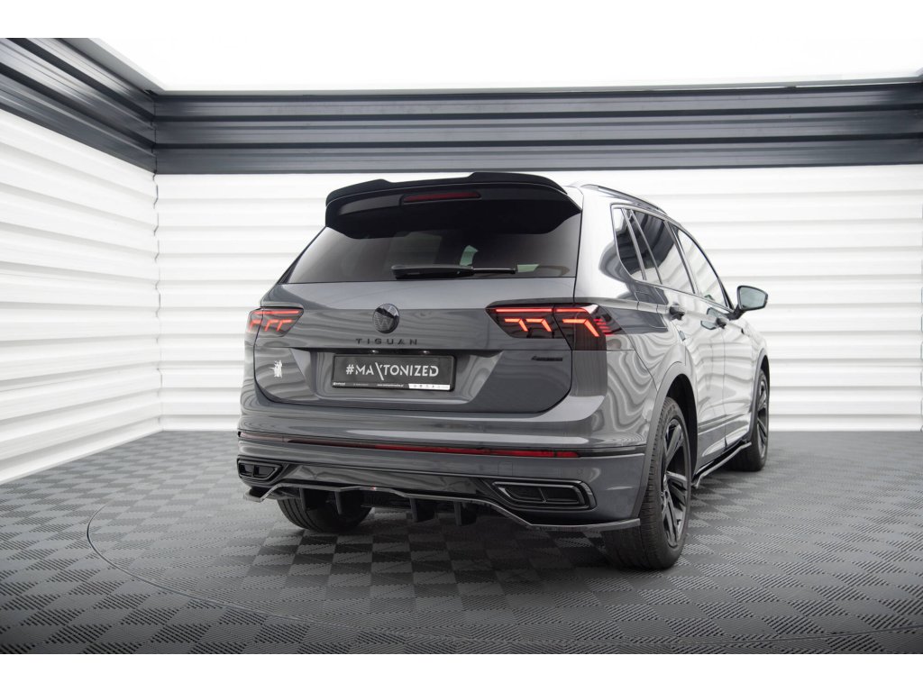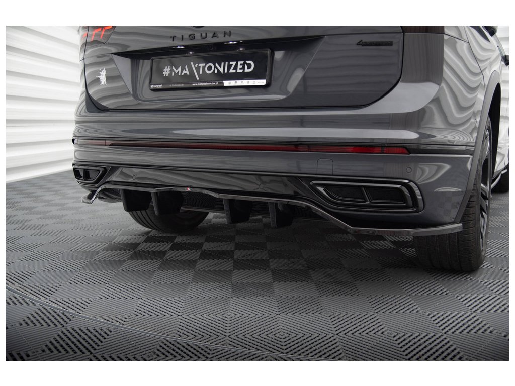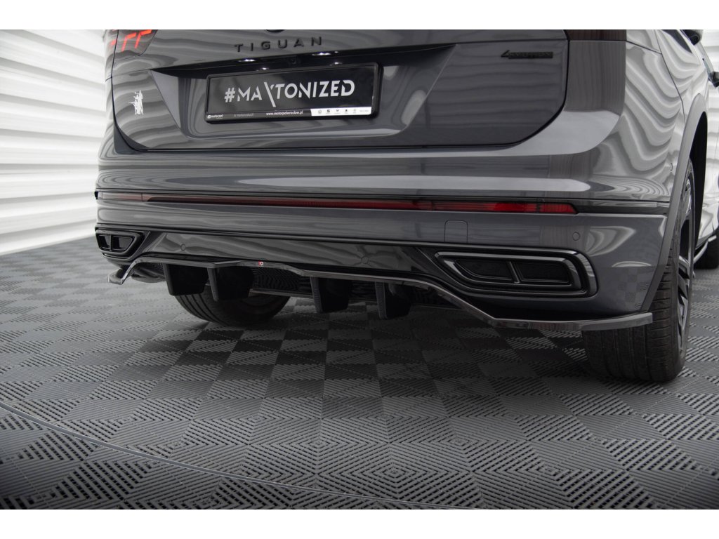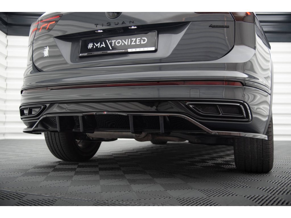 Maxton Design středový spoiler pod zadní nárazník s žebrováním pro Volkswagen Tiguan Mk2 R-Line Facelift, černý lesklý plast ABS
