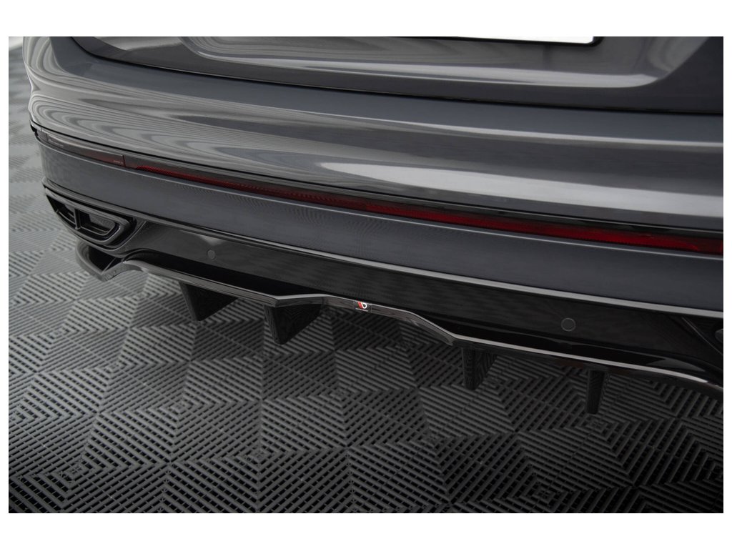 Maxton Design středový spoiler pod zadní nárazník s žebrováním pro vozidlo Volkswagen Tiguan Mk2 R-Line Facelift . Povrchová úprava spoileru černý lesklý plast ABS.