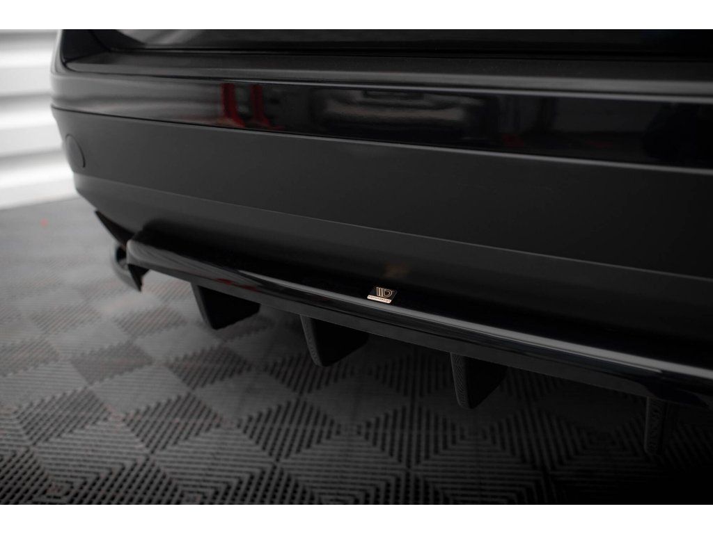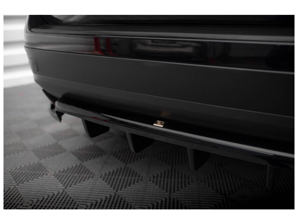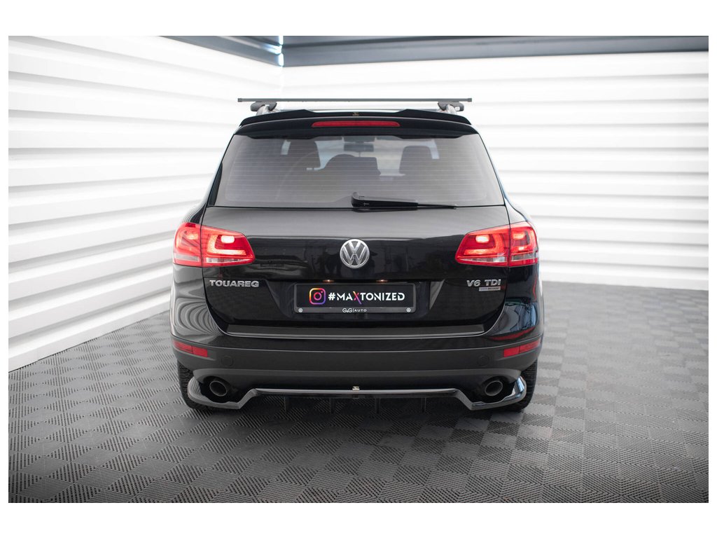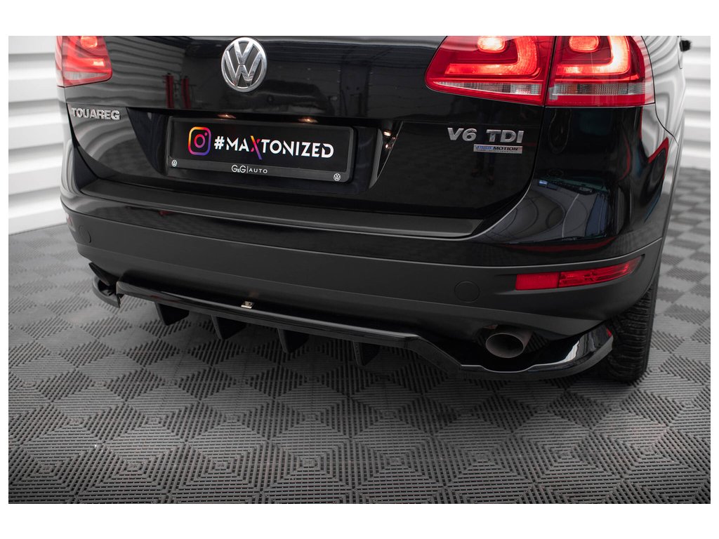 Maxton Design středový spoiler pod zadní nárazník s žebrováním pro Volkswagen Touareg Mk2, černý lesklý plast ABS