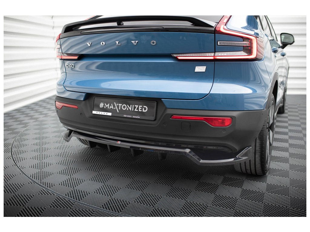 Maxton Design středový spoiler pod zadní nárazník s žebrováním pro vozidlo Volvo C40 Mk1 . Povrchová úprava spoileru černý lesklý plast ABS.