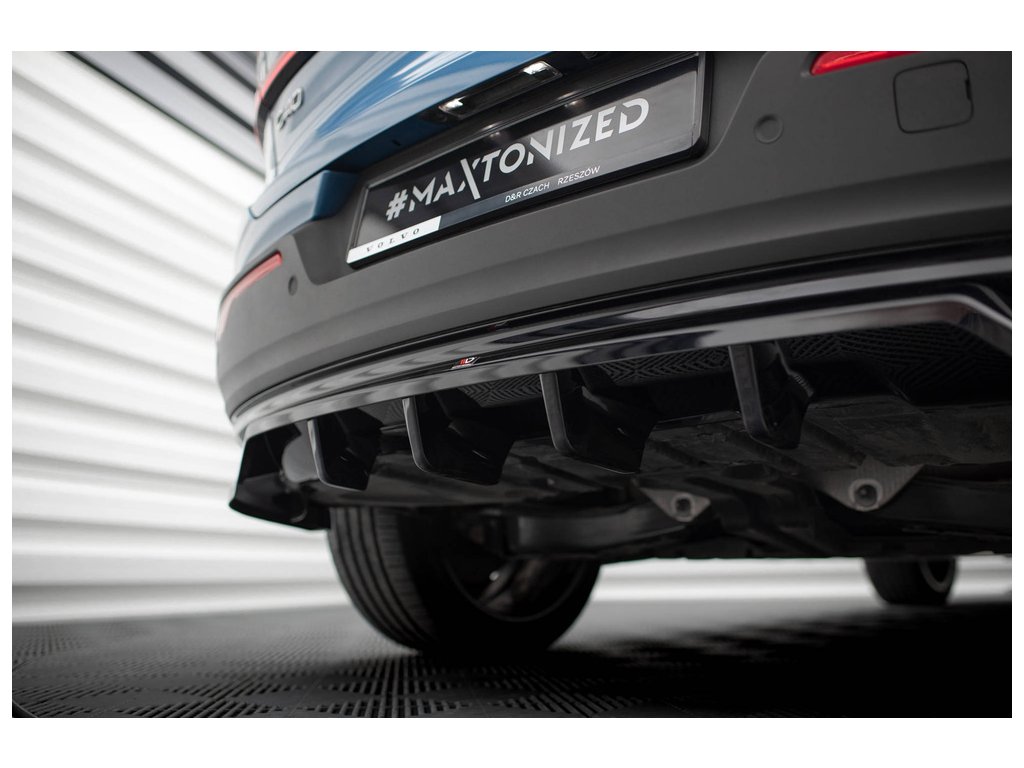Maxton Design středový spoiler pod zadní nárazník s žebrováním pro Volvo C40 Mk1, černý lesklý plast ABS