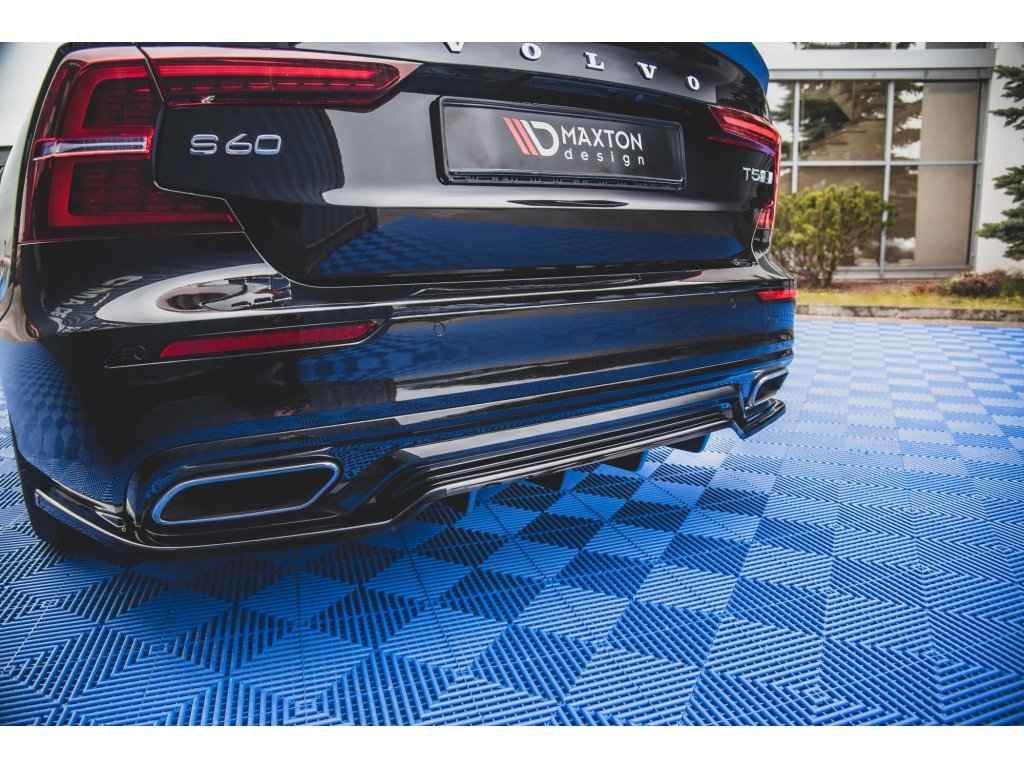 Maxton Design středový spoiler pod zadní nárazník s žebrováním pro vozidlo Volvo S60 Mk3 . Povrchová úprava spoileru carbon-Look.