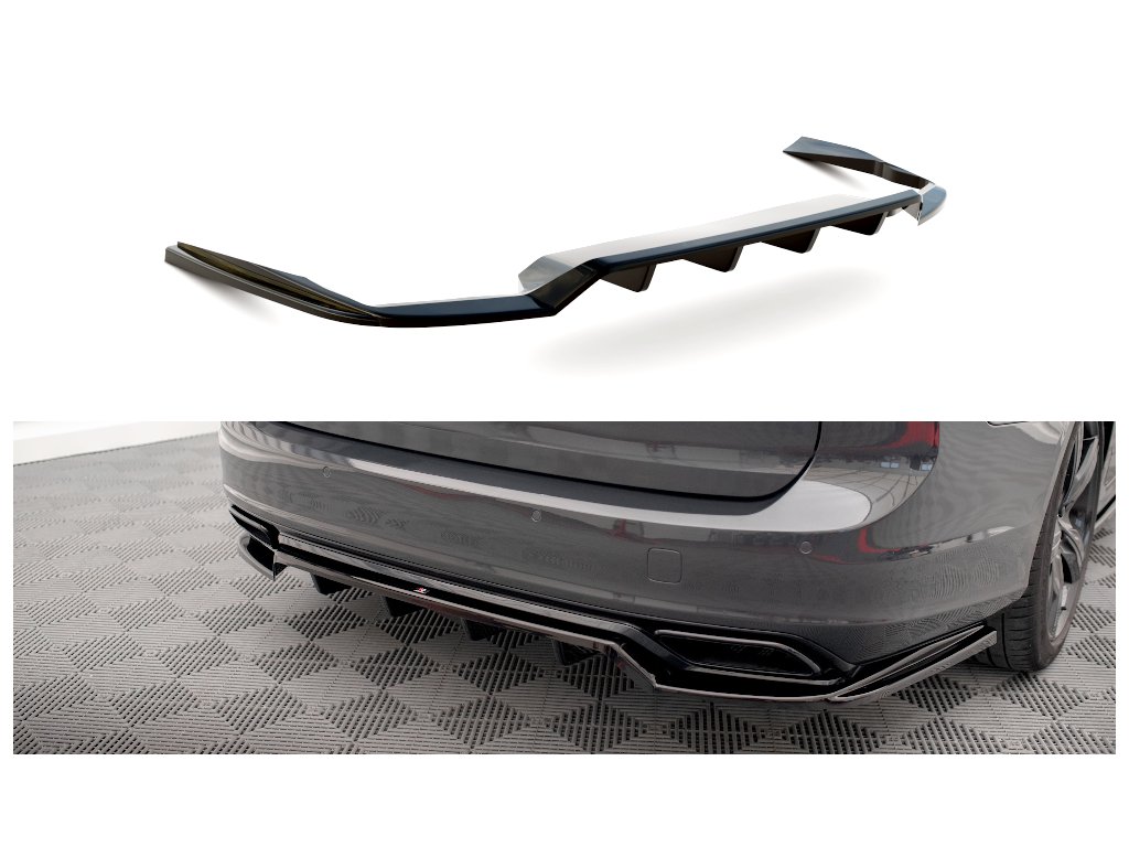 Central Rear Splitter (with vertical bars) Volvo V90 R-Design Mk2, povrchová úprava carbon-Look.