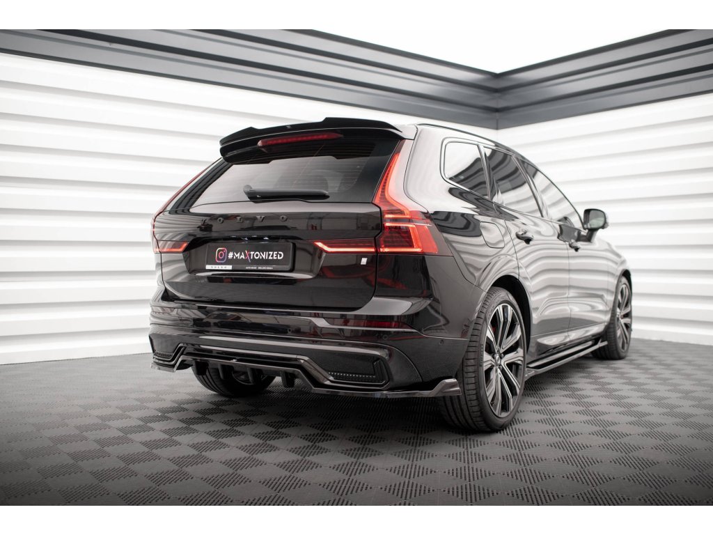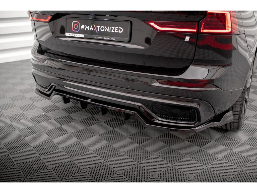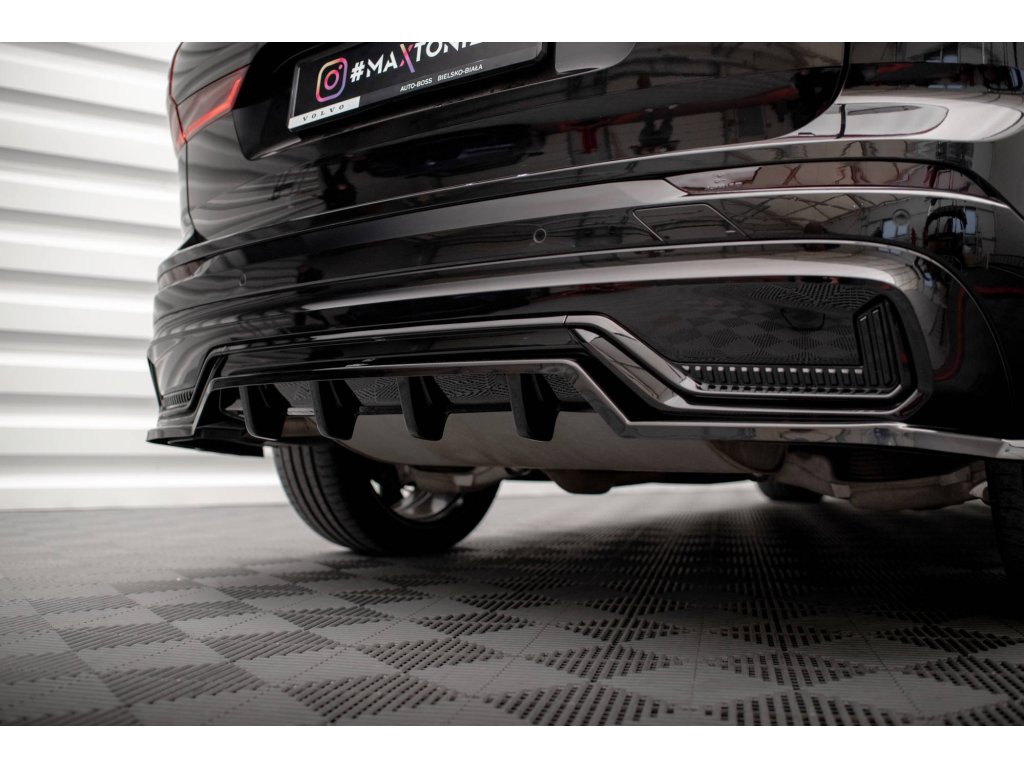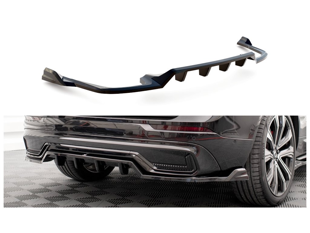 Maxton Design středový spoiler pod zadní nárazník s žebrováním pro vozidlo Volvo XC60 Mk2 Facelift R-Design . Povrchová úprava spoileru carbon-Look.