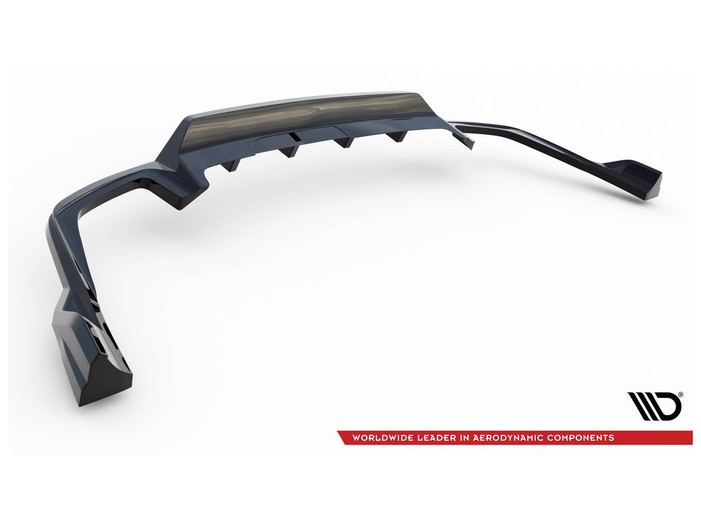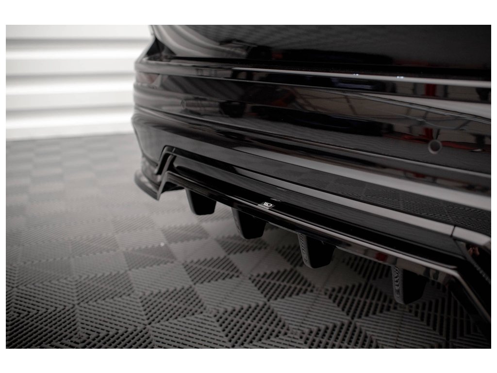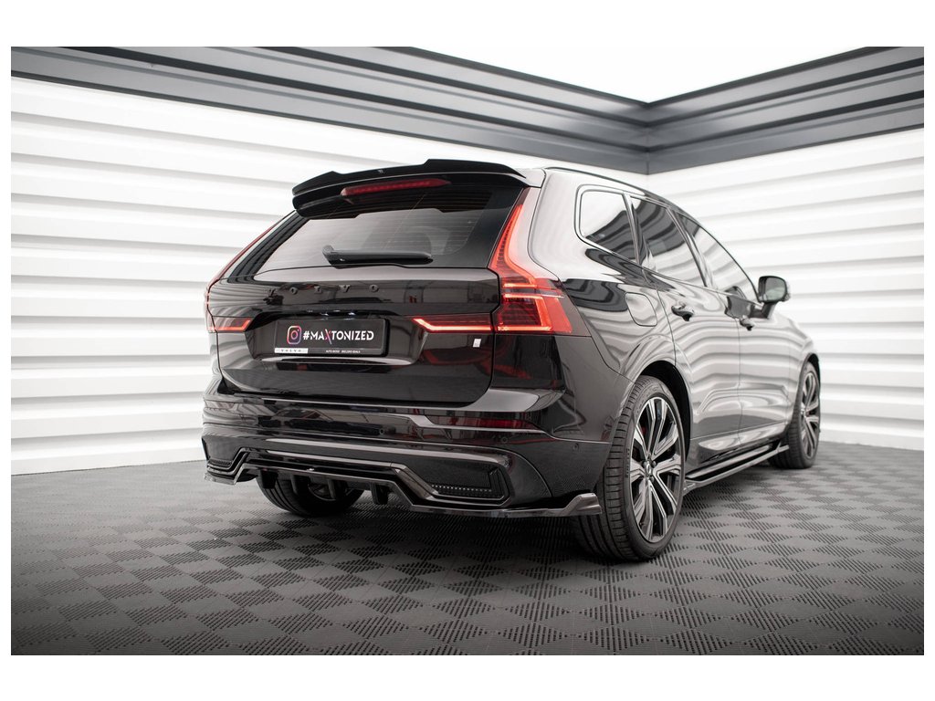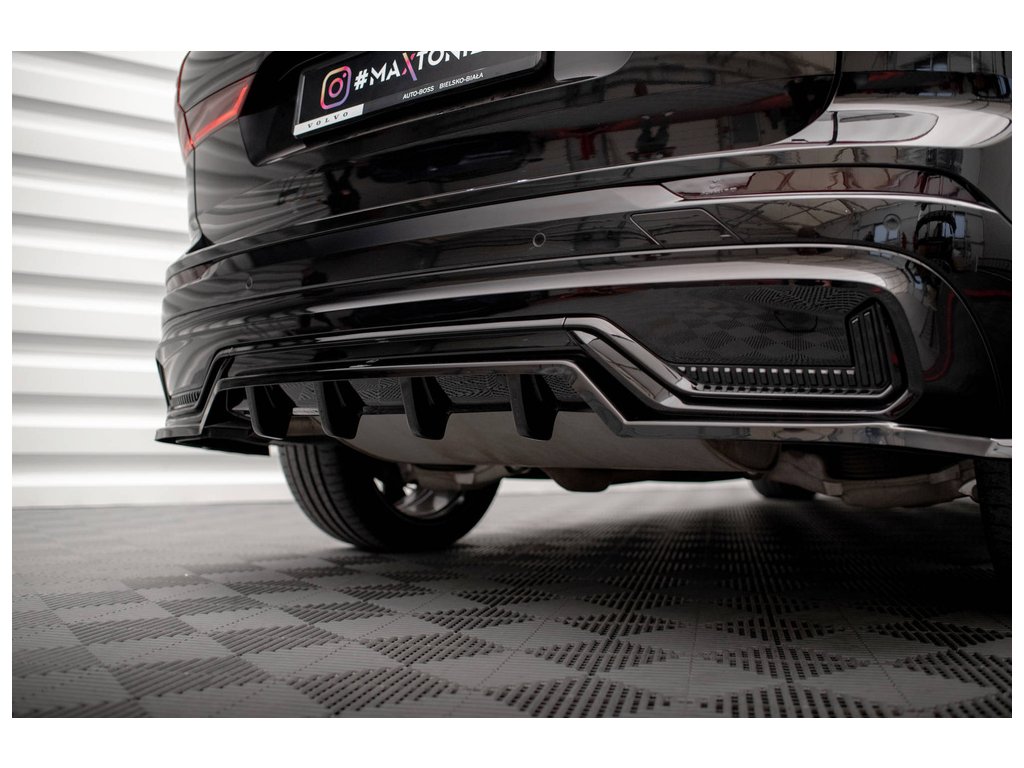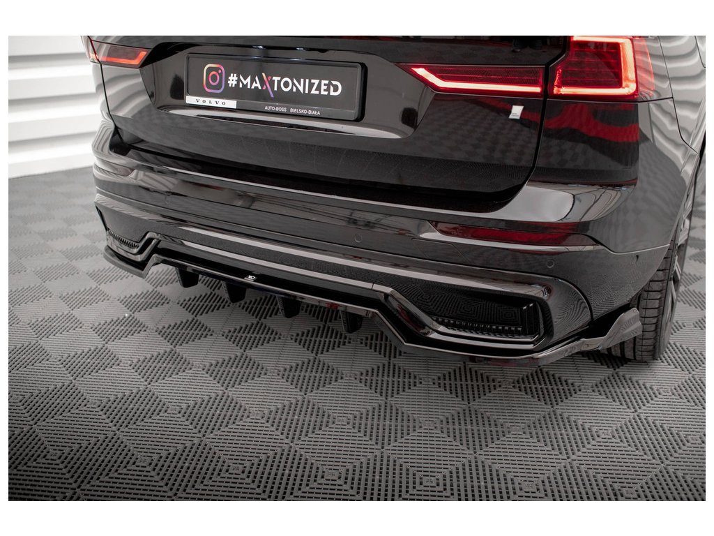 Maxton Design středový spoiler pod zadní nárazník s žebrováním pro vozidlo Volvo XC60 Mk2 Facelift R-Design . Povrchová úprava spoileru černý lesklý plast ABS.