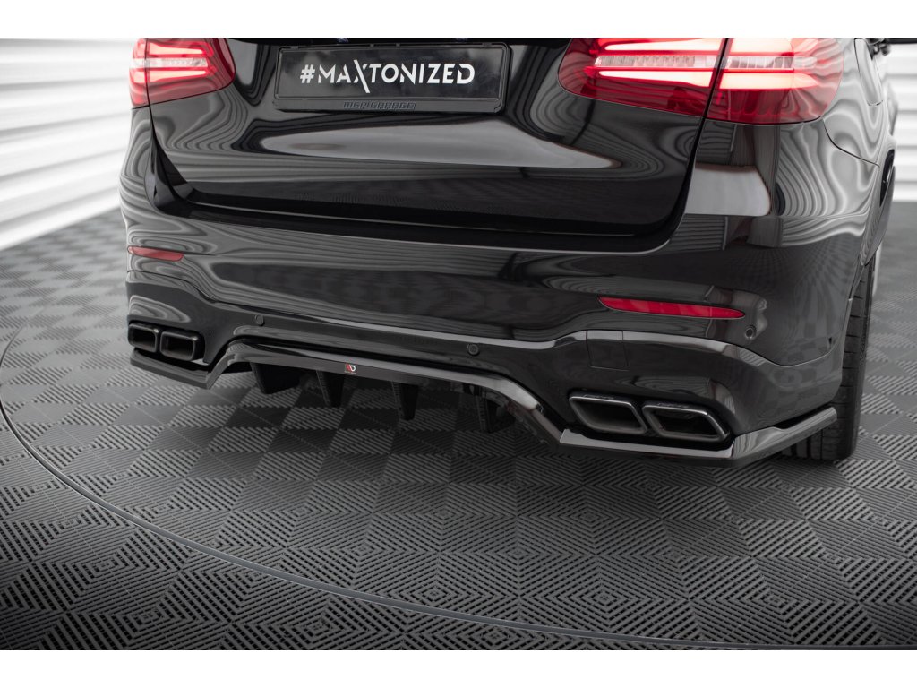 Maxton Design středový spoiler pod zadní nárazník s žebrováním v.1 pro vozidlo Mercedes GLC SUV/X253 /63 AMG . Povrchová úprava spoileru černý lesklý plast ABS.