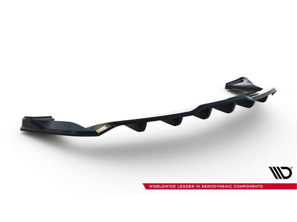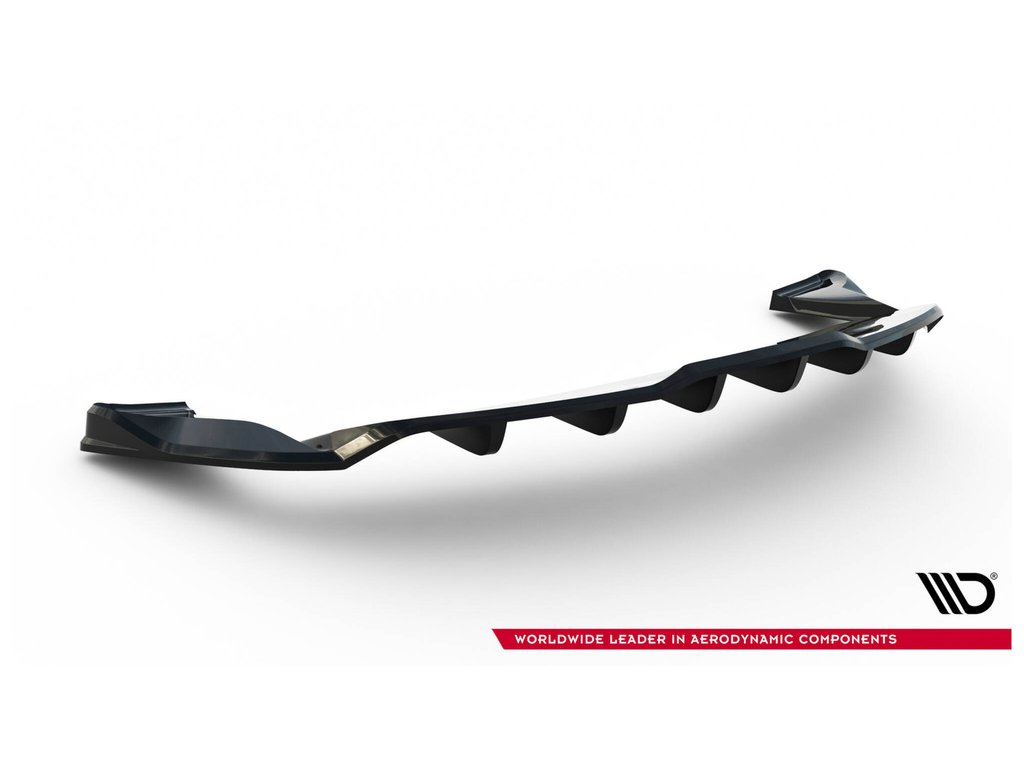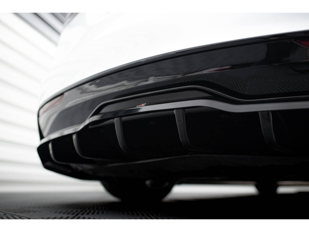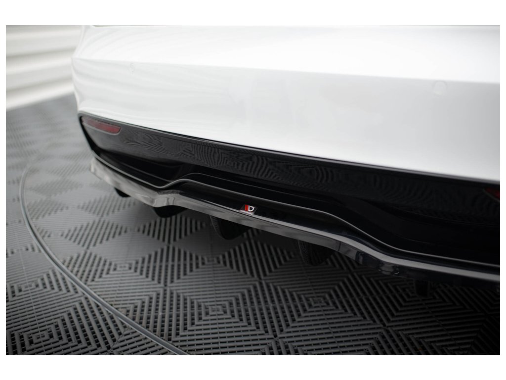 Maxton Design středový spoiler pod zadní nárazník s žebrováním v.1 pro vozidlo Tesla Model S Plaid Mk1 Facelift . Povrchová úprava spoileru černý lesklý plast ABS.