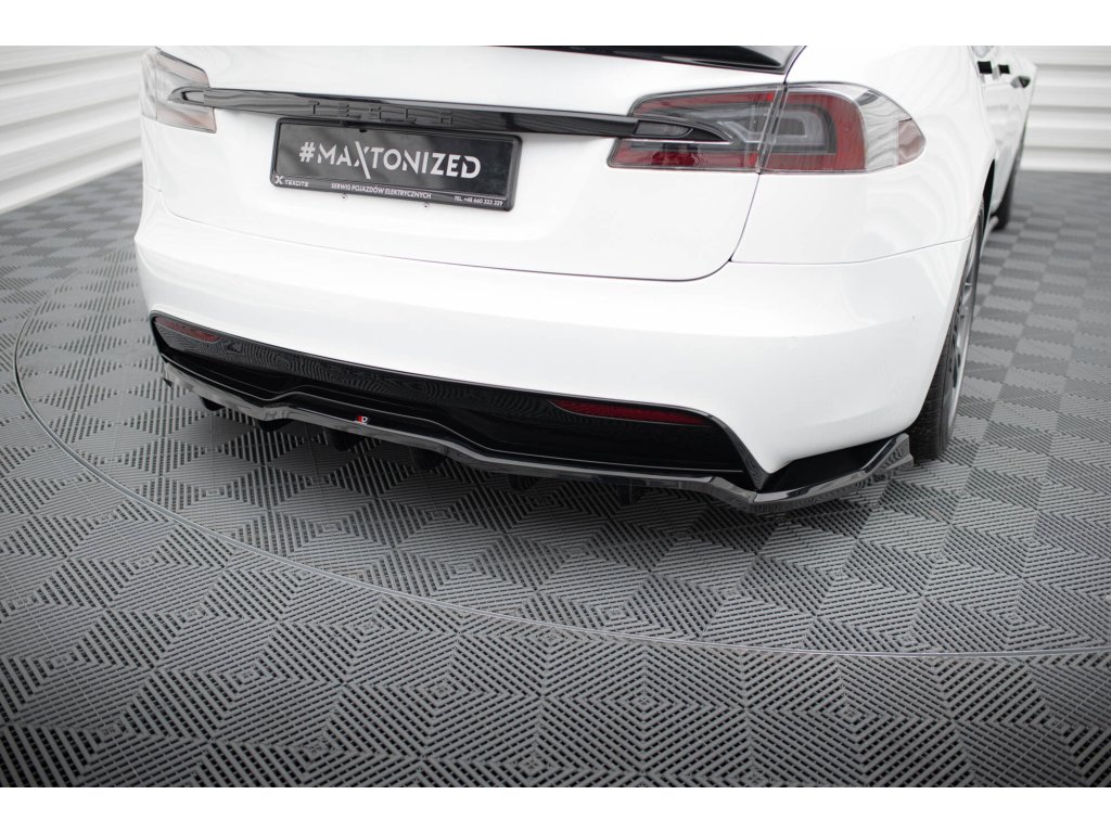 Maxton Design středový spoiler pod zadní nárazník s žebrováním v.1 pro Tesla Model S Plaid Mk1 Facelift, černý lesklý plast ABS