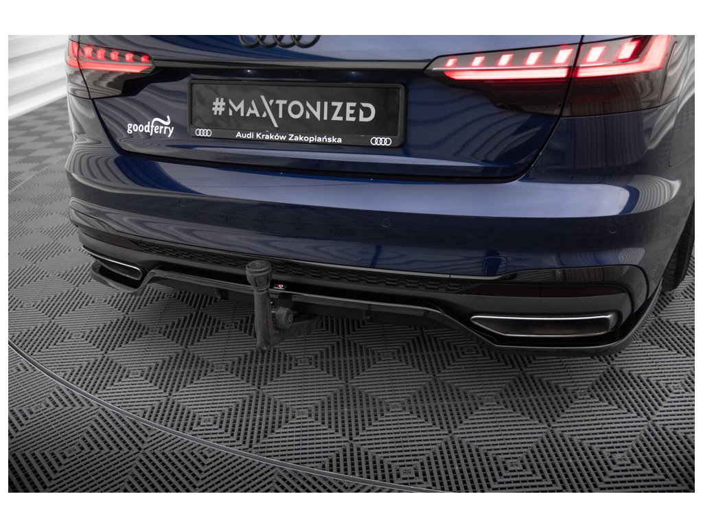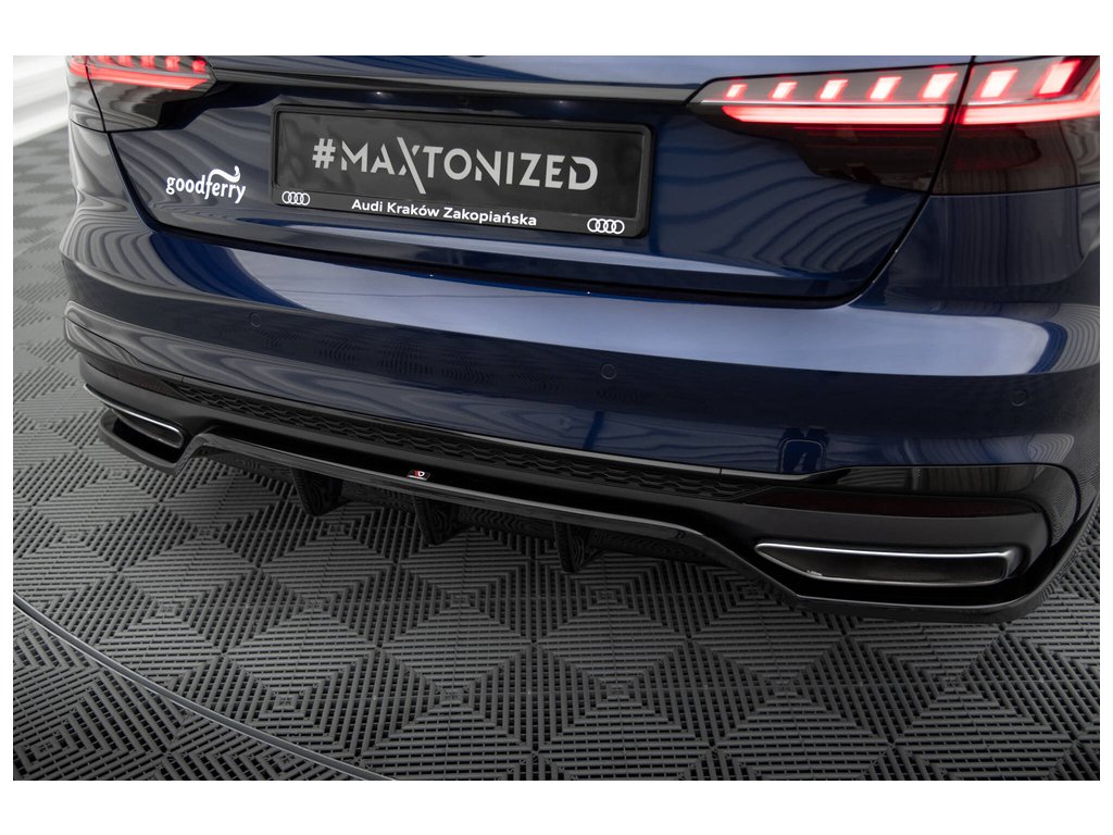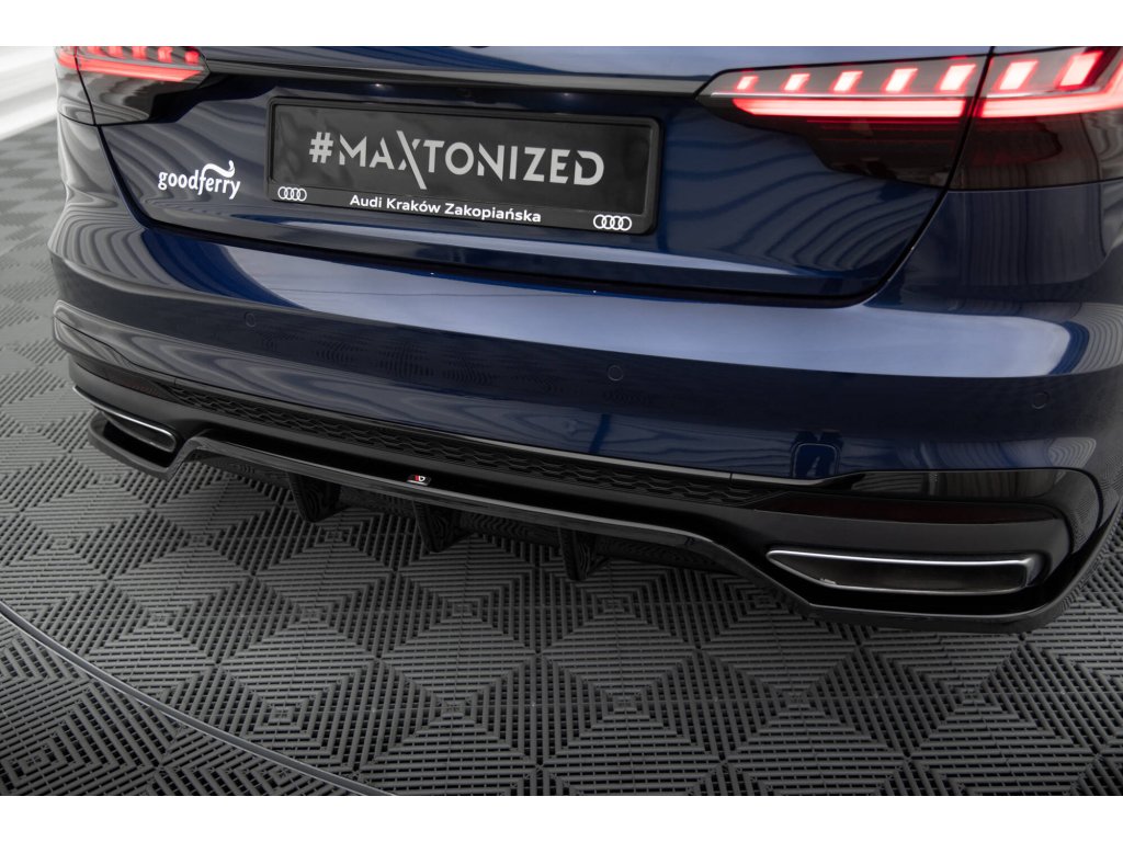 Maxton Design středový spoiler pod zadní nárazník s žebrováním v.2 pro Audi A4 B9 FL, černý lesklý plast ABS, S-Line