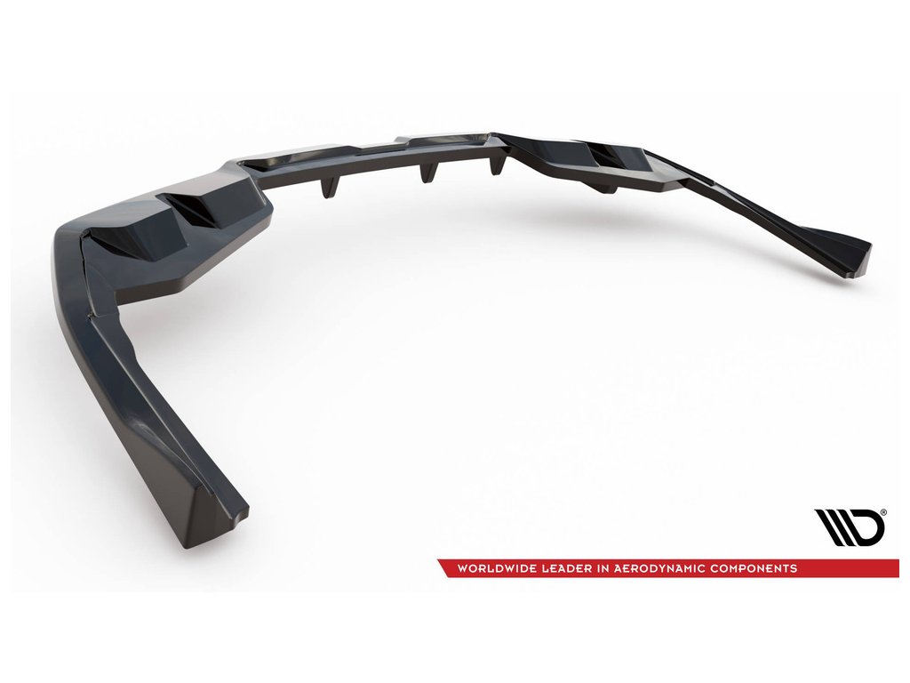Maxton Design středový spoiler pod zadní nárazník s žebrováním v.2 pro vozidlo BMW i4 G26 M-Pack . Povrchová úprava spoileru carbon-Look.