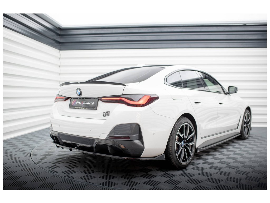 Maxton Design středový spoiler pod zadní nárazník s žebrováním v.2 pro BMW i4 G26 M-Pack, carbon-Look
