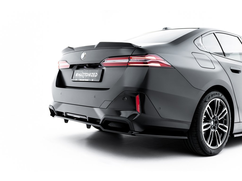 Maxton Design středový spoiler pod zadní nárazník s žebrováním v.2 pro vozidlo BMW řada 5 G60 M-Pack . Povrchová úprava spoileru černý lesklý plast ABS.