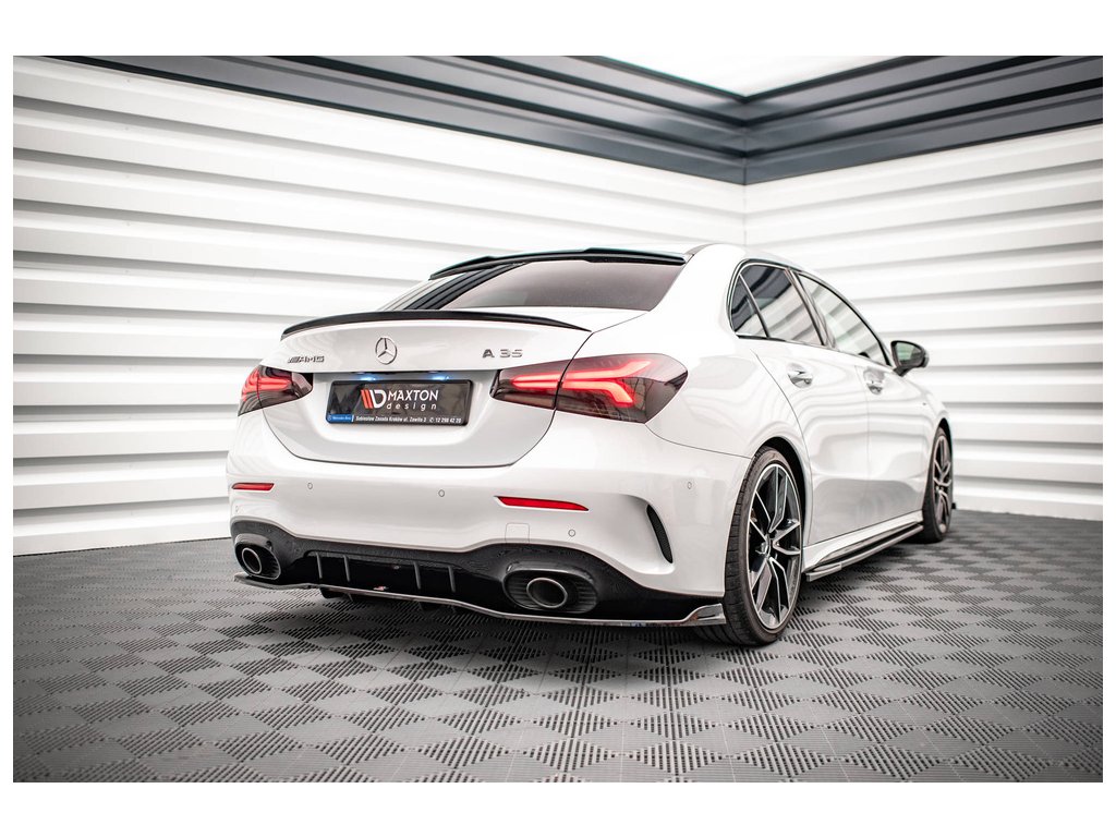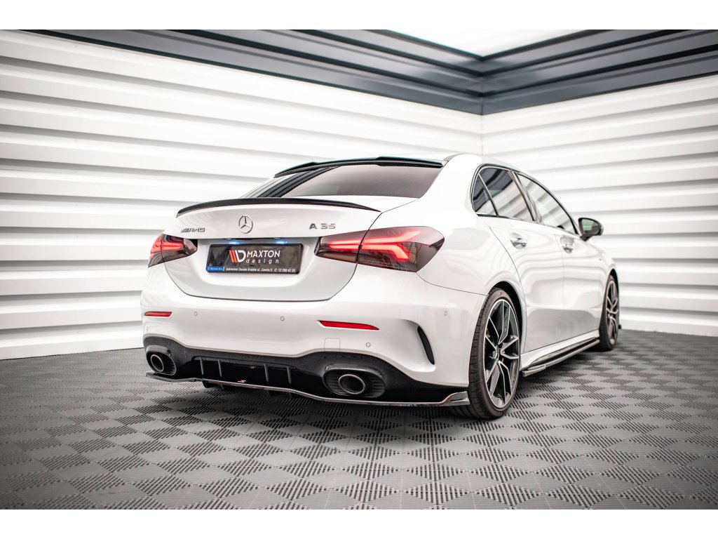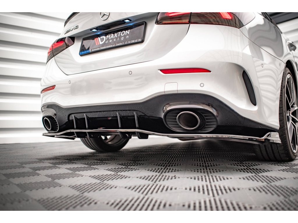 Maxton Design středový spoiler pod zadní nárazník s žebrováním v.2 pro vozidlo Mercedes třída A W177 A35 AMG . Povrchová úprava spoileru černý lesklý plast ABS.