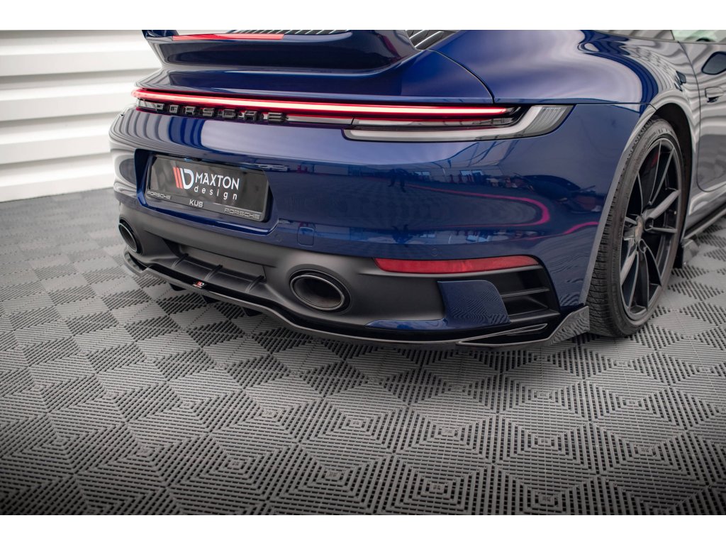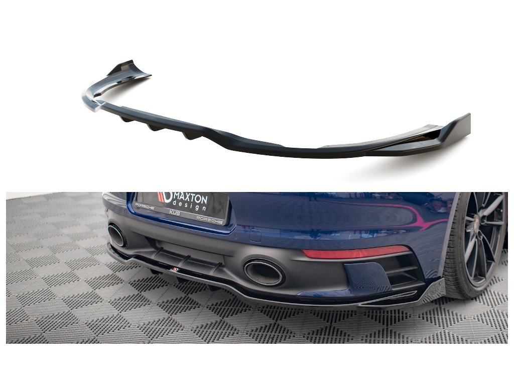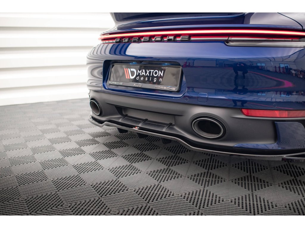 Maxton Design středový spoiler pod zadní nárazník s žebrováním v.2 pro vozidlo Porsche 911 992 Carrera/Carrera S Aero . Povrchová úprava spoileru carbon-Look.