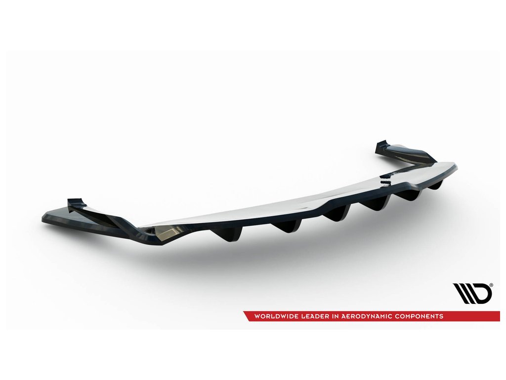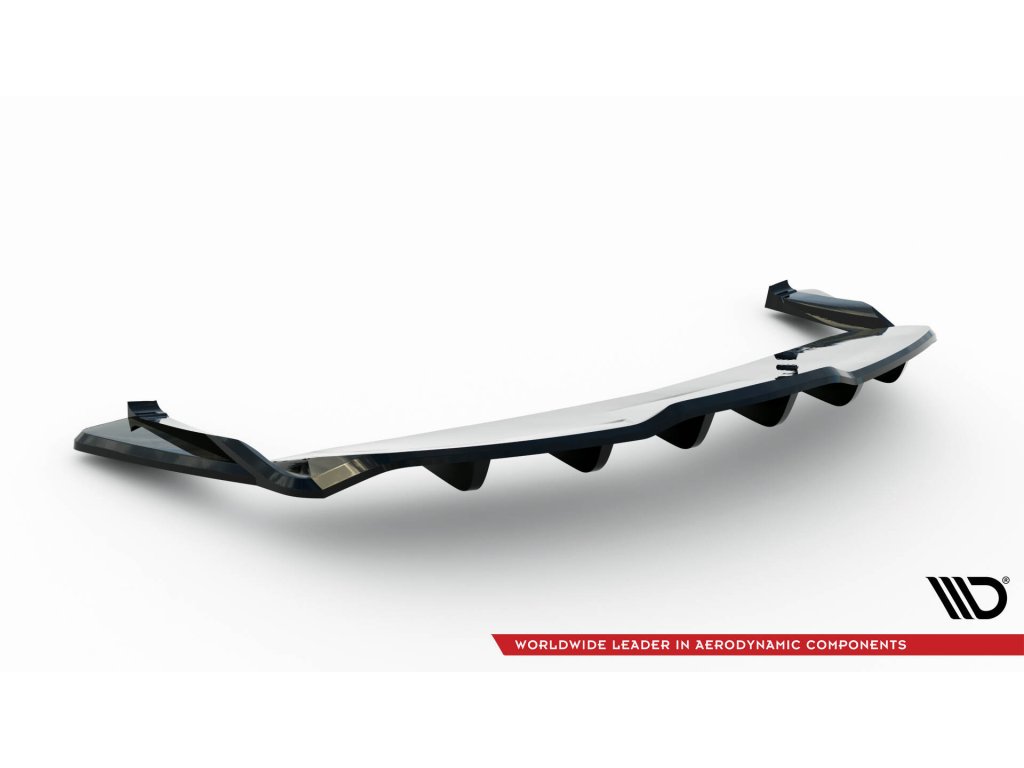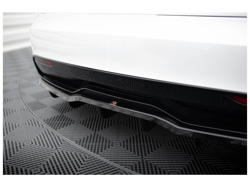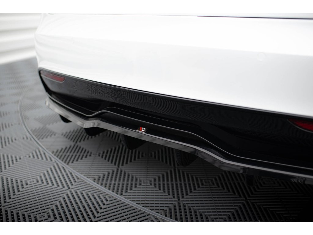 Maxton Design středový spoiler pod zadní nárazník s žebrováním v.2 pro vozidlo Tesla Model S Plaid Mk1 Facelift . Povrchová úprava spoileru černý lesklý plast ABS.