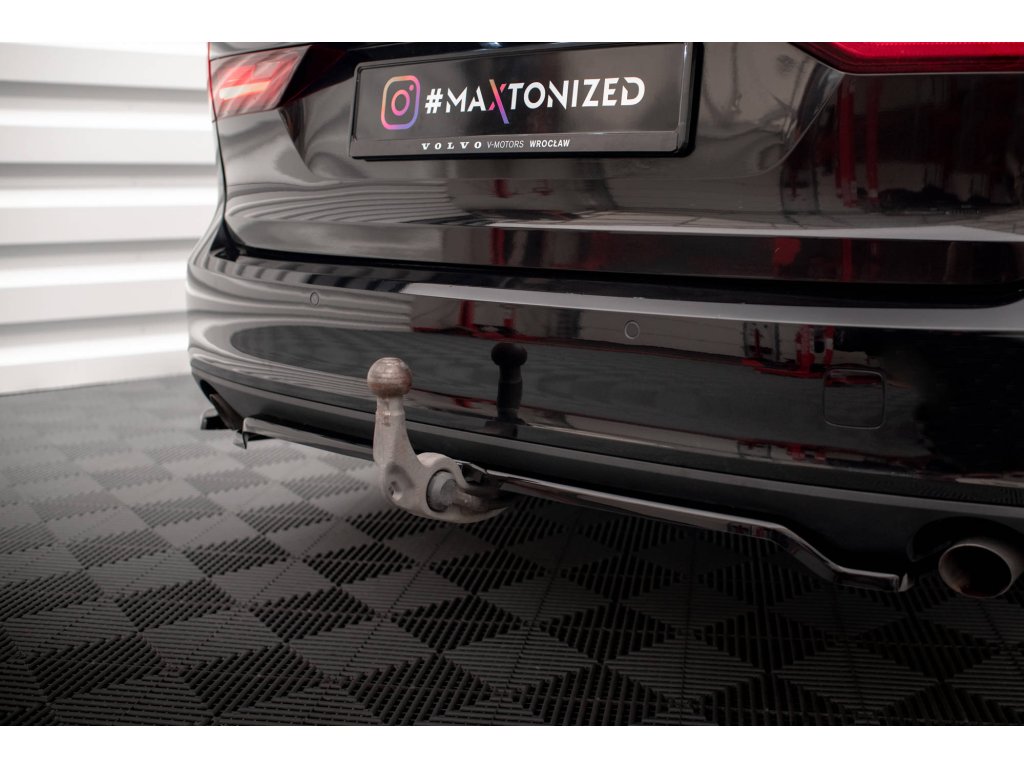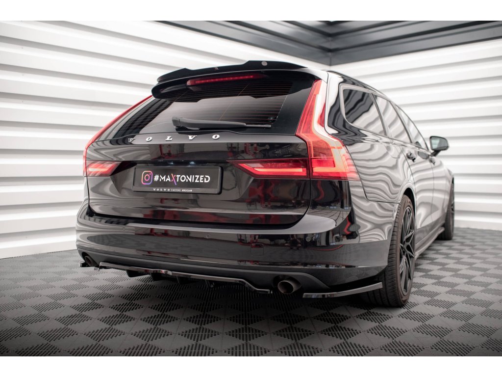 Maxton Design středový spoiler pod zadní nárazník s žebrováním v.2 pro vozidlo Volvo V90 Mk2 . Povrchová úprava spoileru carbon-Look.