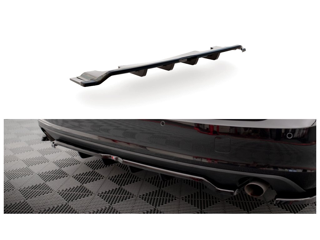 Maxton Design středový spoiler pod zadní nárazník s žebrováním v.2 pro Volvo V90 Mk2, carbon-Look