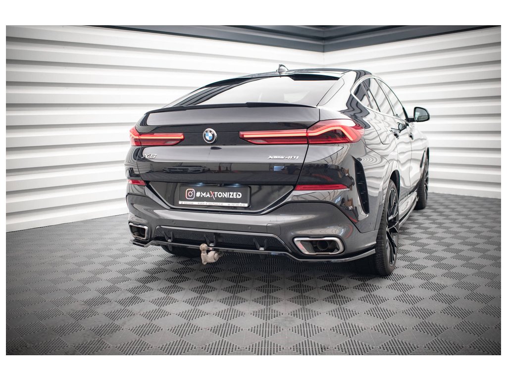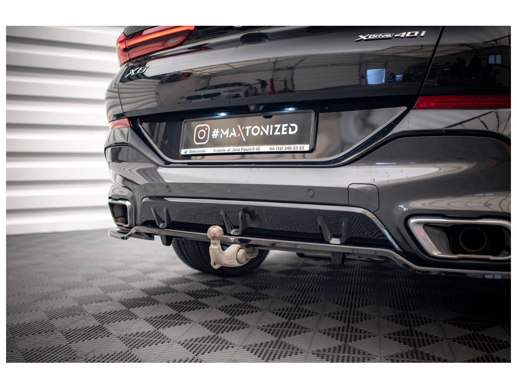 Maxton Design středový spoiler pod zadní nárazník s žebrováním v.3 pro vozidlo BMW X6 G06 /M-Pack . Povrchová úprava spoileru černý lesklý plast ABS.