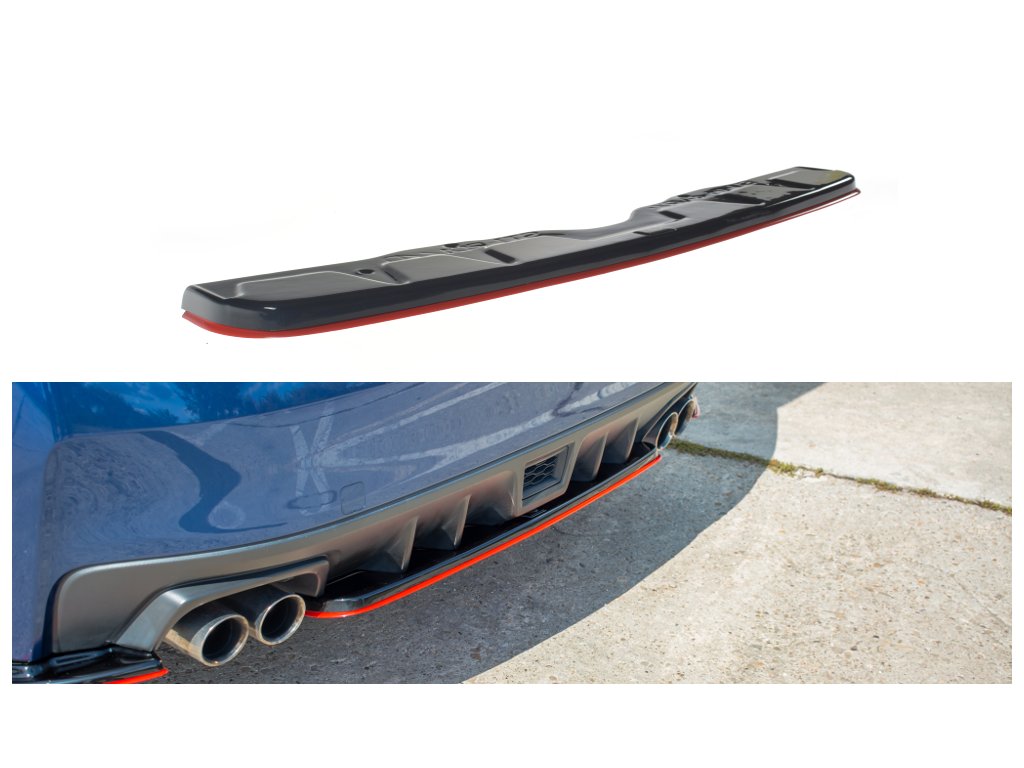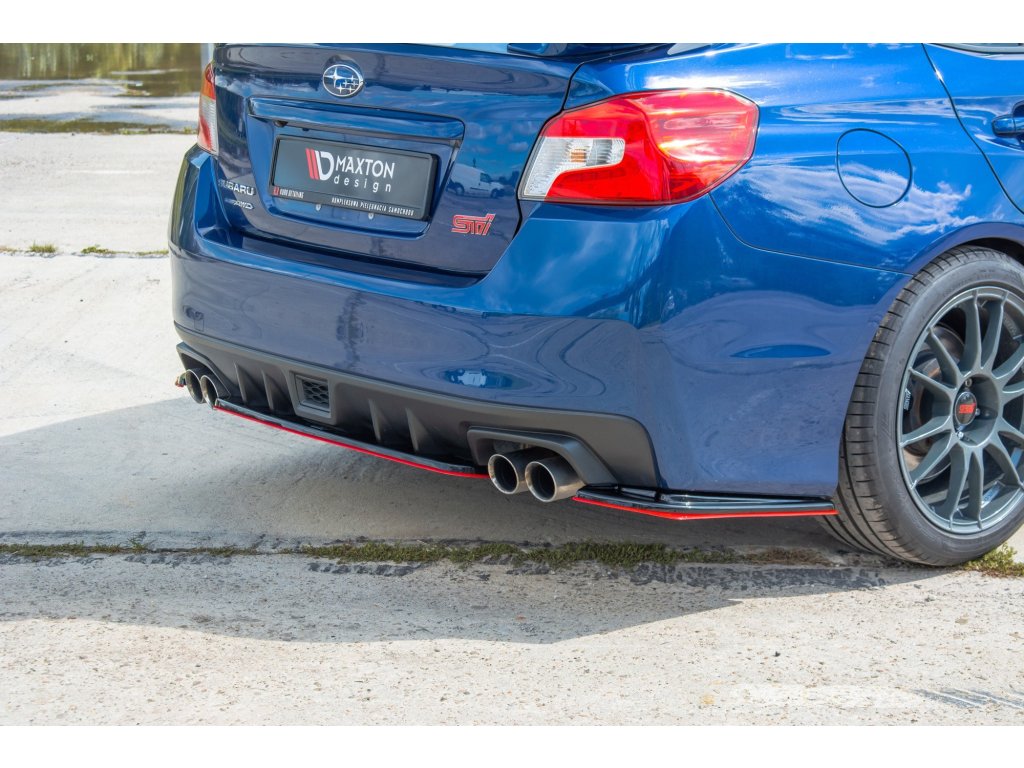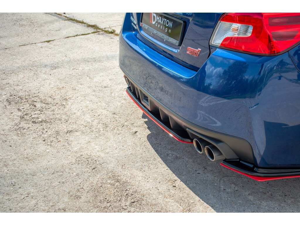 Maxton Design středový spoiler pod zadní nárazník ver.2 pro Subaru Impreza Mk4, carbon-Look, s červenou linkou