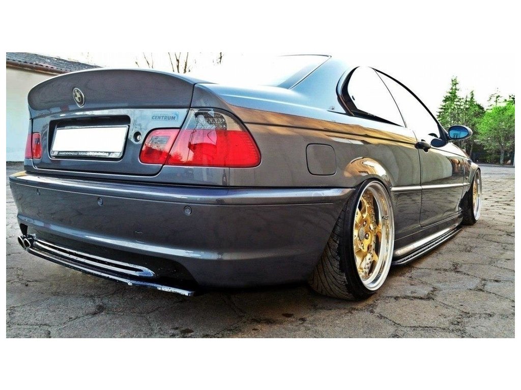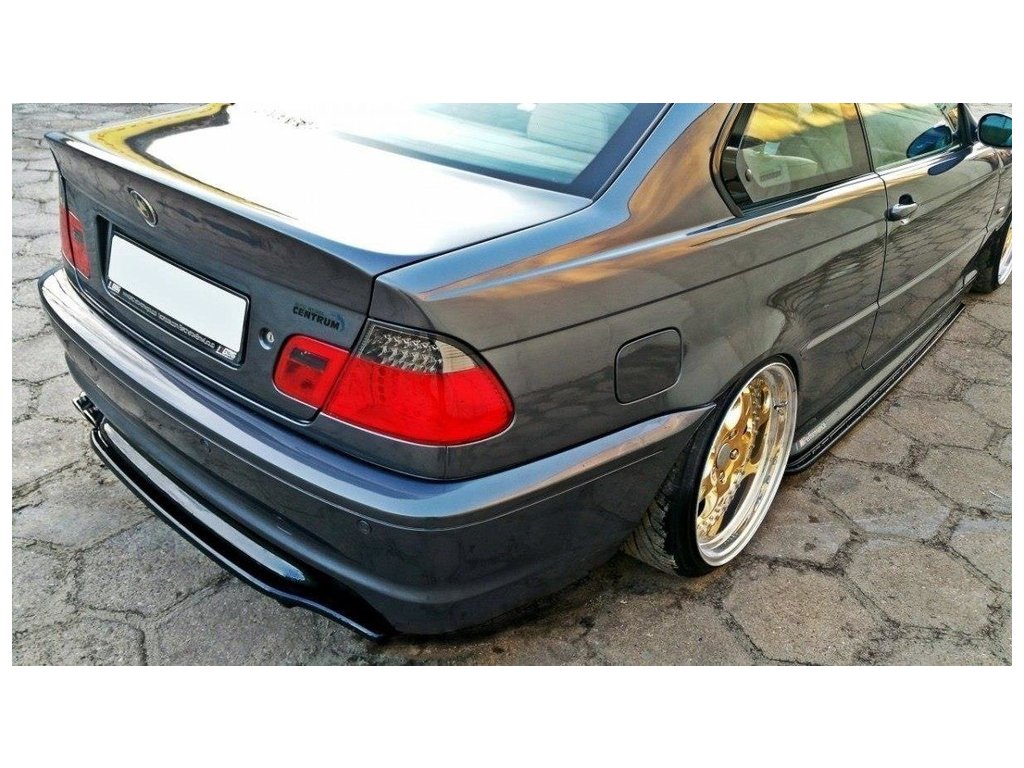 Maxton Design středový spoiler zadního nárazníku pro vozidlo BMW řada 3 E46 . Povrchová úprava spoileru černý lesklý plast ABS.