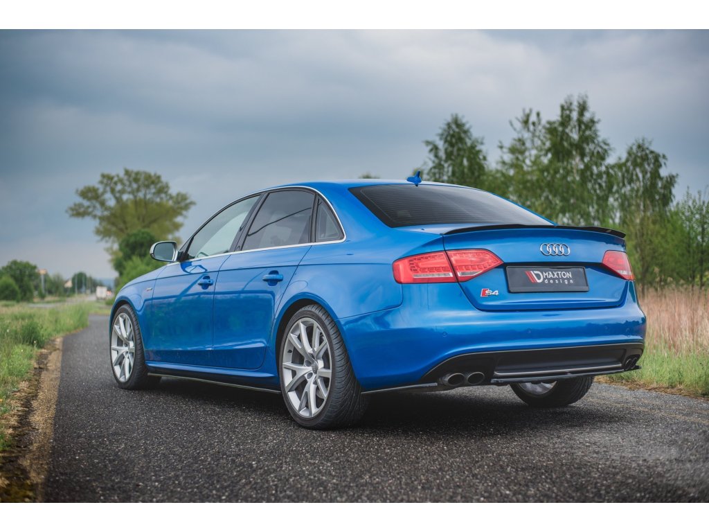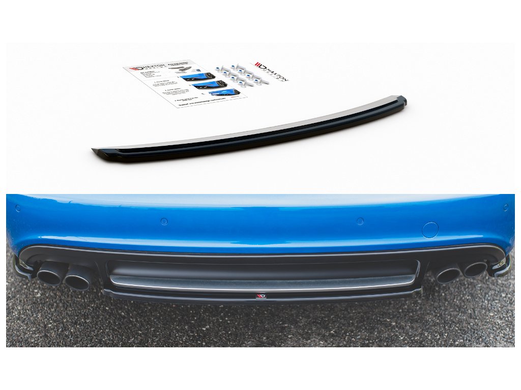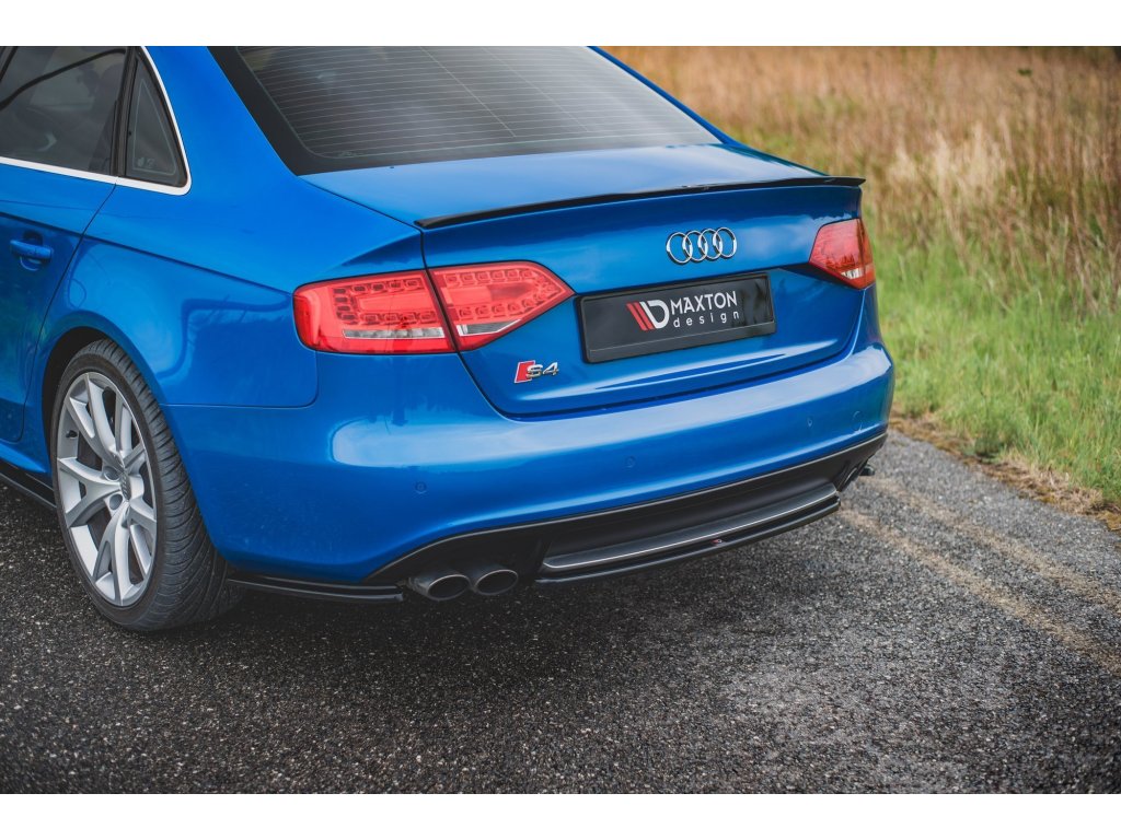 Maxton Design středový spoiler zadního nárazníku pro vozidlo Audi A4 B8 . Povrchová úprava spoileru černý lesklý plast ABS.