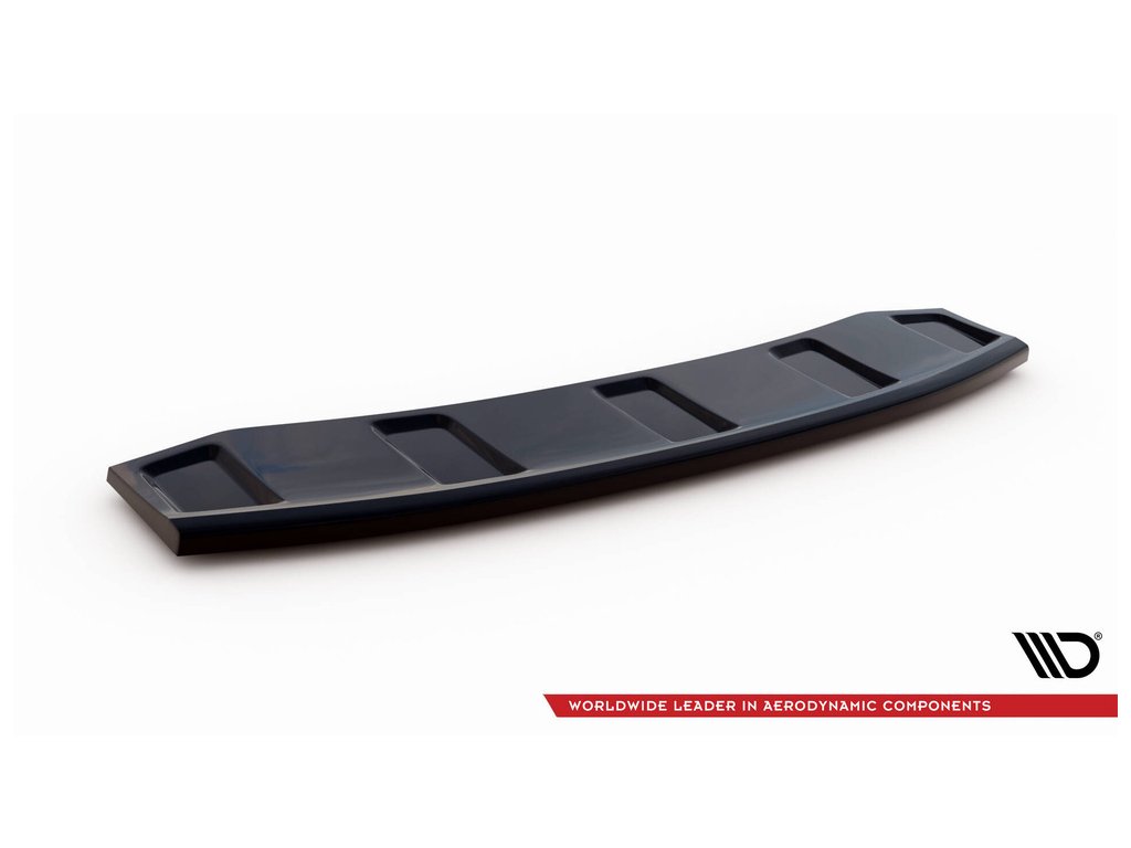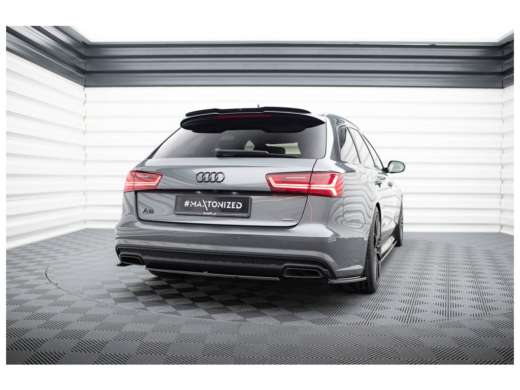 Maxton Design středový spoiler zadního nárazníku pro vozidlo Audi A6 C7 FL . Povrchová úprava spoileru černý lesklý plast ABS.