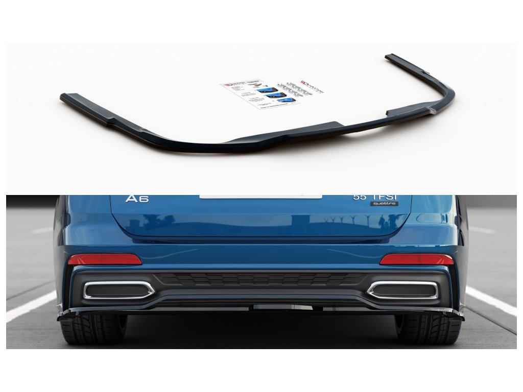Maxton Design středový spoiler zadního nárazníku pro vozidlo Audi A6 C8 . Povrchová úprava spoileru carbon-Look.